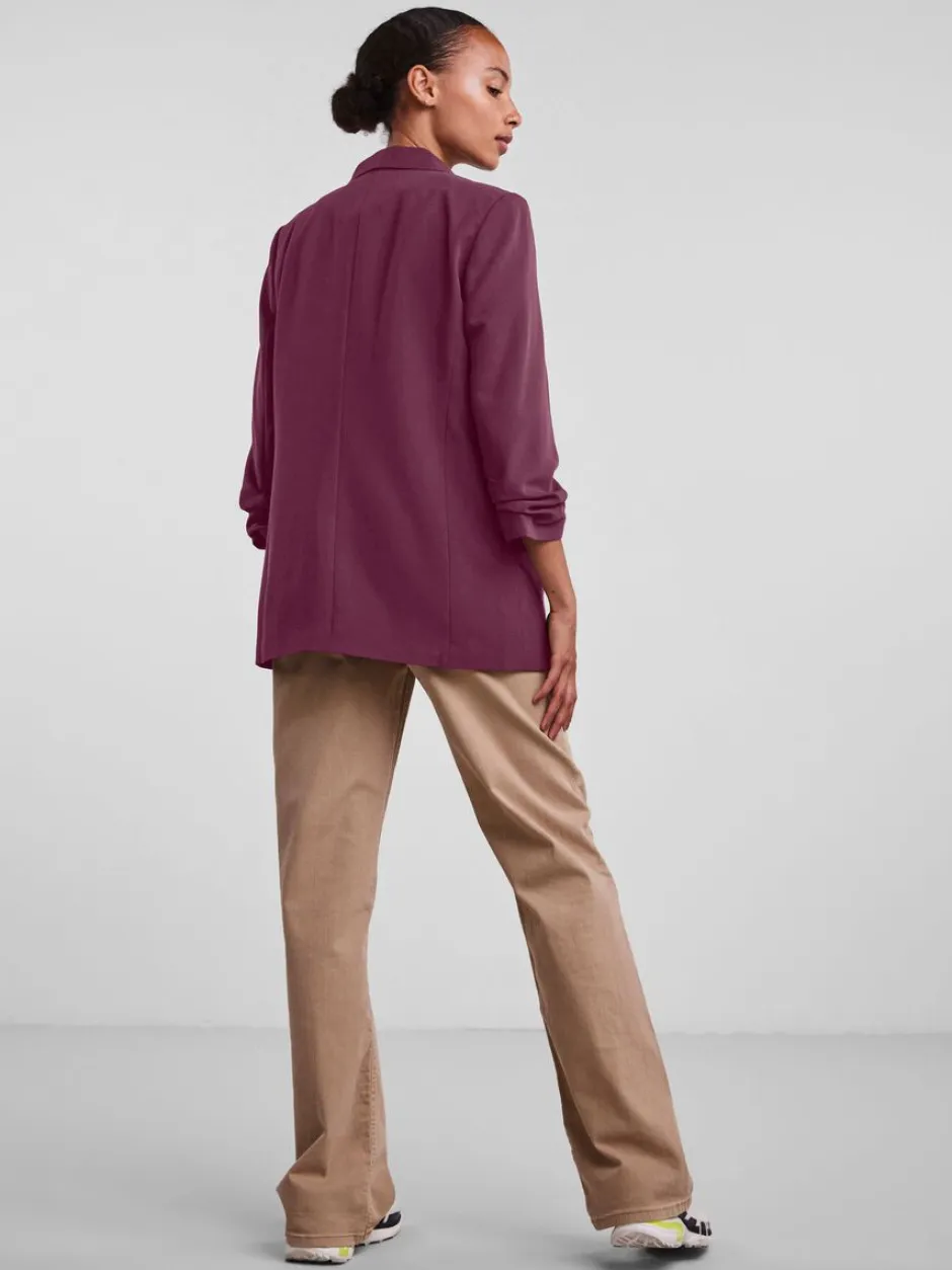 Pieces rento, pitkä bleiseri – 3/4 hihat – Normaali mitoitus – Valkaisu kielletty – Rumpukuivaus kielletty – Silitys keskilämpötilalla