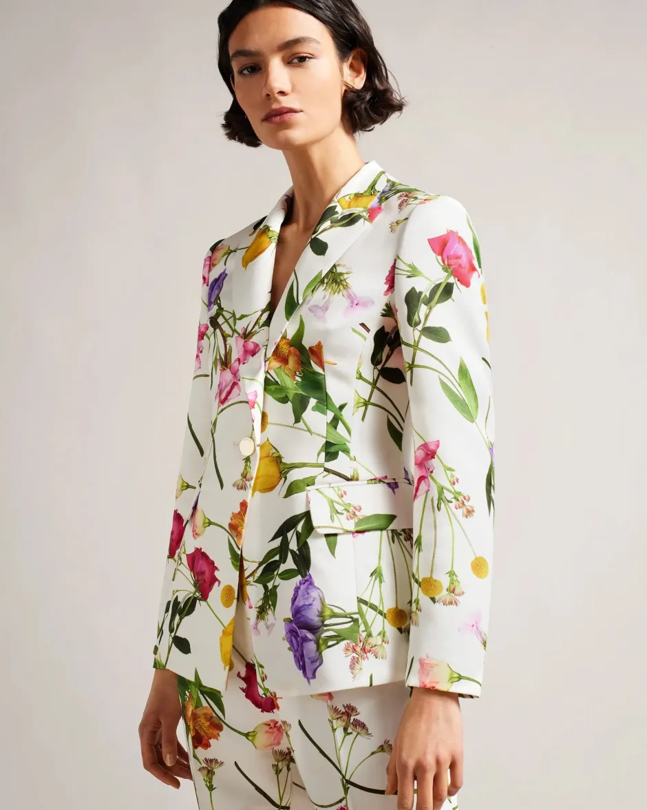ZIAAH on valmis toimintaan kokoushuoneesta baariin ja sen jälkeen. Hajallaan oleva kukkakimppukuvio korostaa naisellista puolta, kun taas yksiriviset napit ja kärkikäänne pitävät sen terävinä. Yhdistä yhteensopivien housujen kanssa saadaksesi vauhdin arvoisen lookin. Puvun takki Hajanainen kimppu kukkaprintti Tiukka Yksiriviset napit Päällinen käänne Taskut