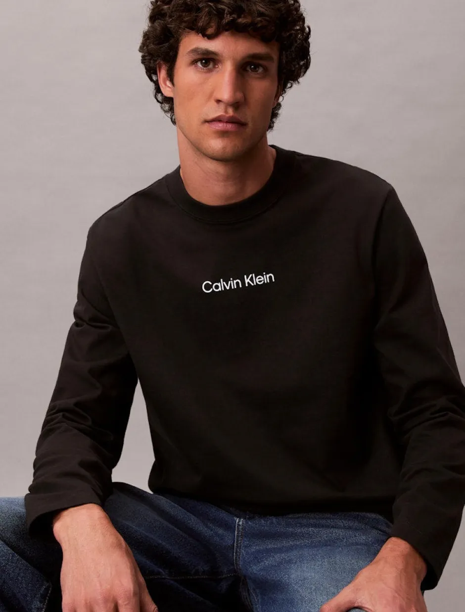 • Calvin Klein -logo rinnassa”>Pitkähihainen paita, jossa puuvillatrikoota, pyöreä pääntie, pitkät hihat ja Calvin Klein -logo rinnassa.