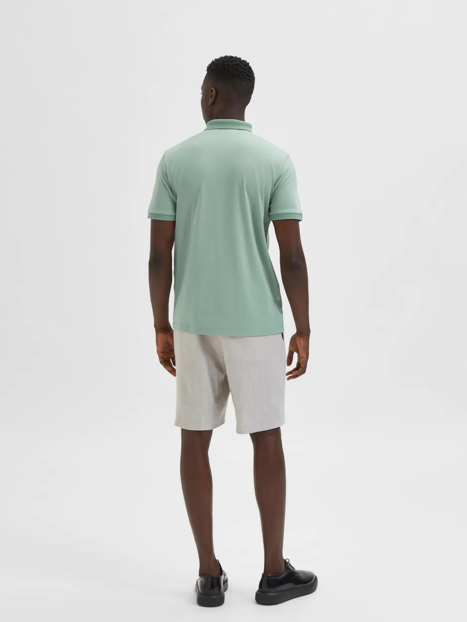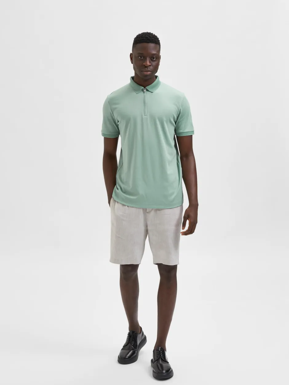 Miesten lyhythihainen pikeepaita, edessä puolivetoketju. Kaulukset ja hihansuut ribattu. Materiaali mukavan tuntuista luomupuuvilla-polyester sekoitusta. Pinnassa silkkimäinen kiilto. Normaali istuvuus…