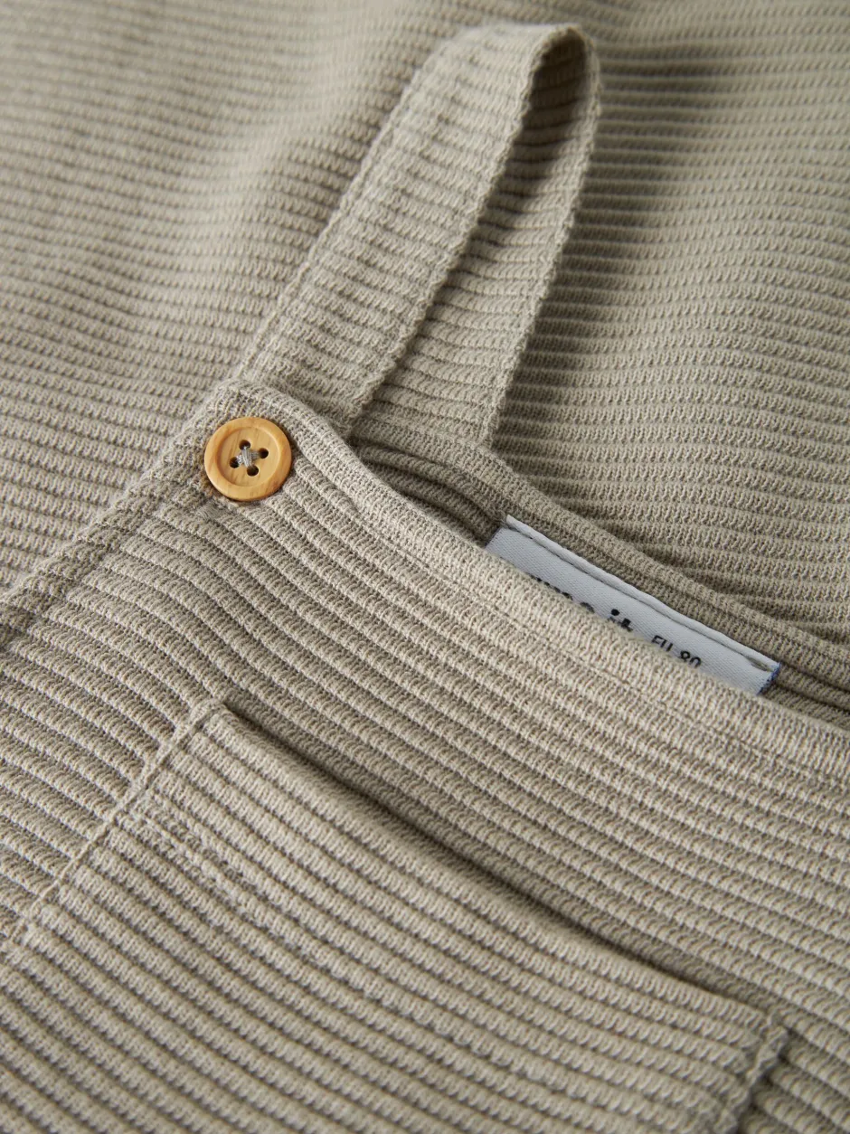 Housuissa on regular fit -istuvuus, napitus edessä ja käytännöllinen etu-tasku, joka viimeistelee ulkoasun ja tarjoaa pienen säilytystilan pikkutavaroille.