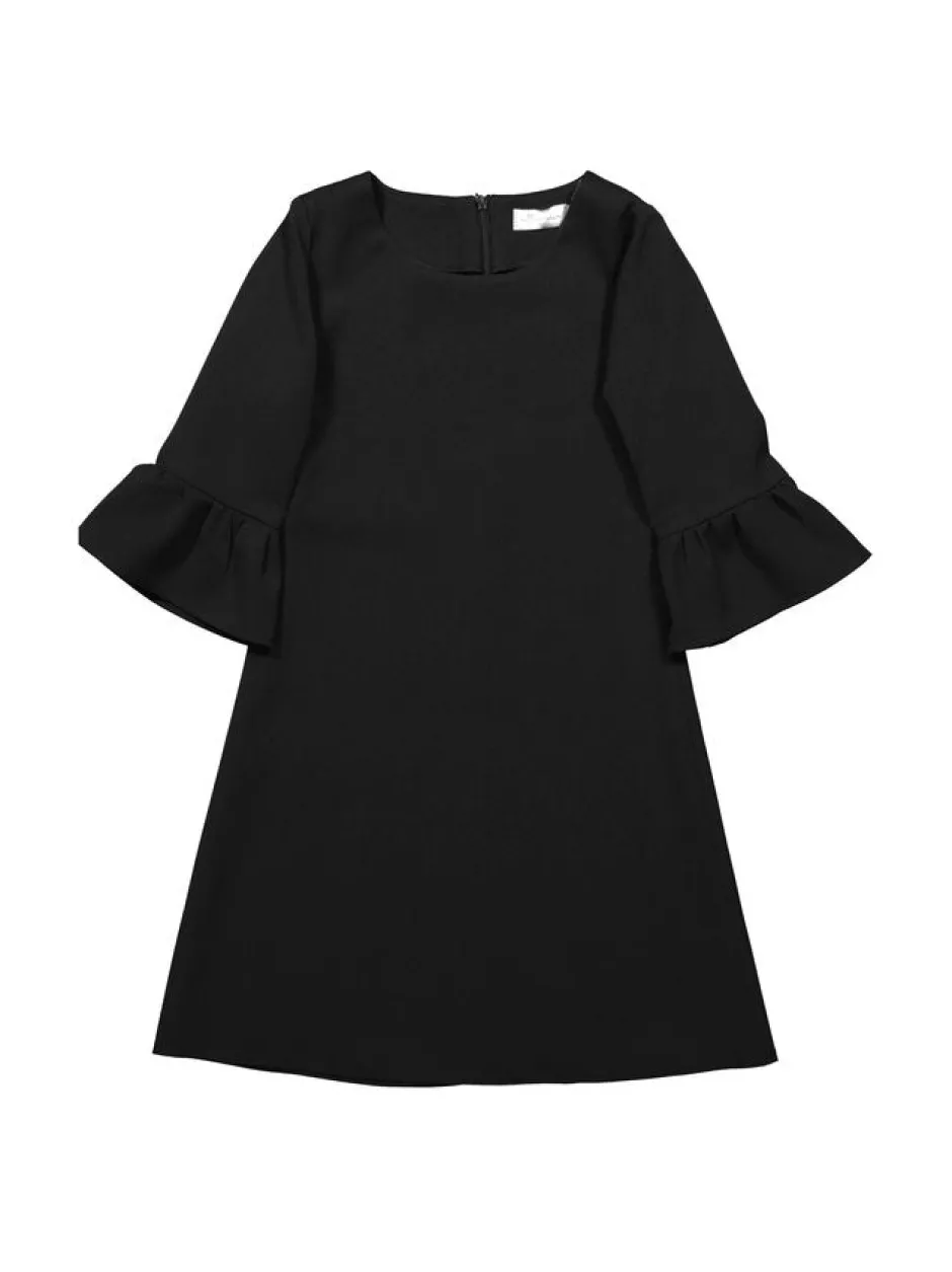 Mingnelin yksinkertaisen kaunis, vuoriton mekko. O-pääntie, trumpettihihat. Hieman levenee helmaan, selässä vetoketju.