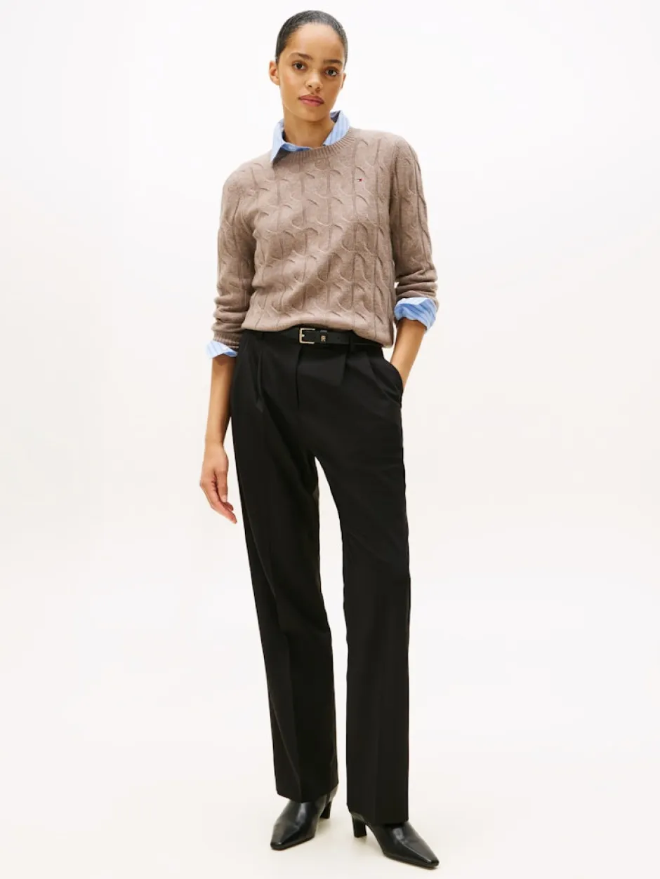 Tommy Hilfiger ihana 100% villainen neule. Pehmeä materiaali ja klassinen palmikkoneulos regular fit istuvuudella. Joustinneulotut kaulus, hihansuut ja helma.