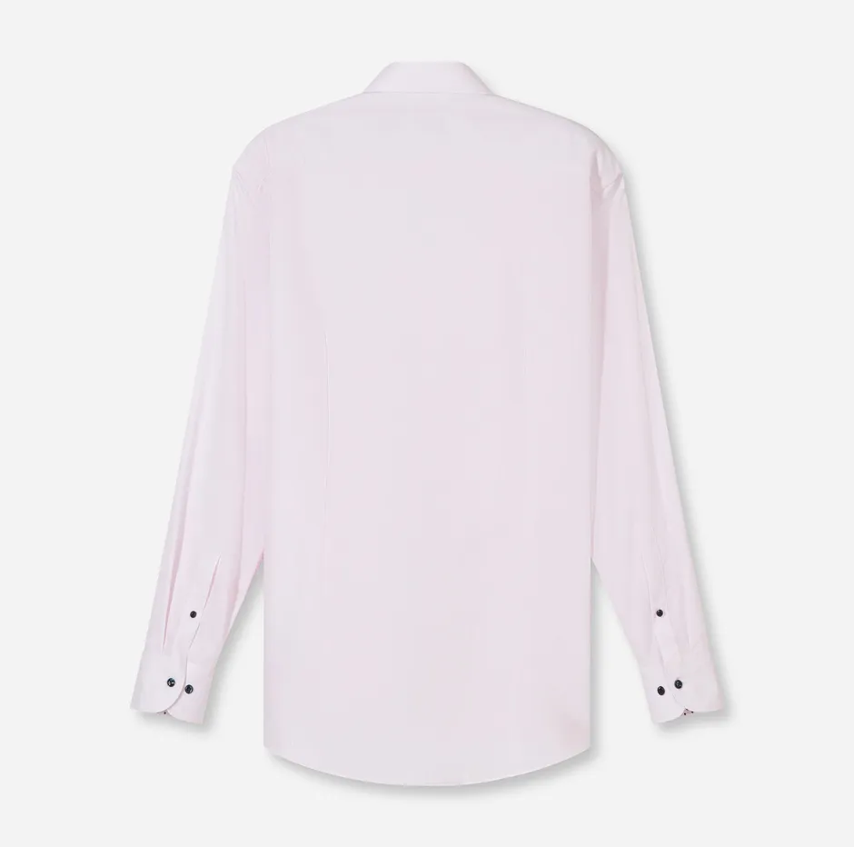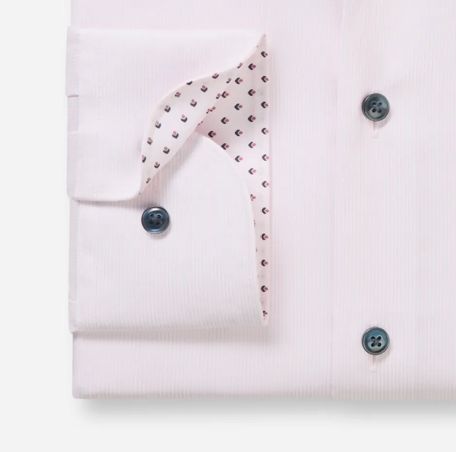 Paidassa on New Kent ‑kaulus, joka toimii hyvin sekä ilman solmiota että pukukokonaisuuden kanssa. Roosa sävy tuo klassiseen popliiniin raikkaan vivahteen, joka sopii erityisesti kevään ja kesän tyyleihin. Paita on OEKO‑TEX® STANDARD 100 ‑sertifioitu, mikä kertoo materiaalin turvallisuudesta ja vastuullisesta tuotannosta.