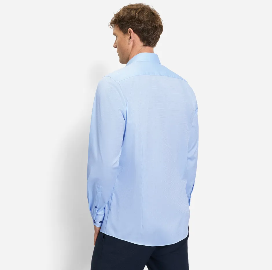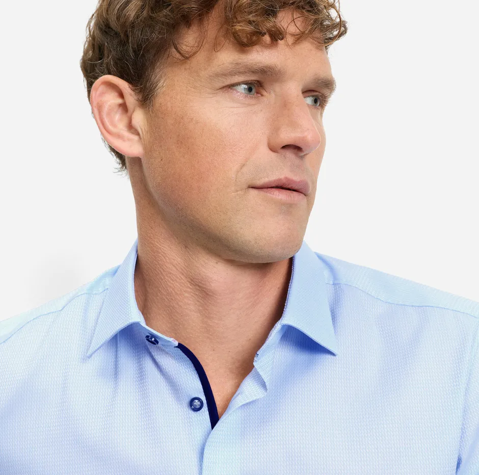 Laadukas Comfort Stretch ‑materiaali yhdistää puuvillan hengittävyyden ja elastolefiinin joustavuuden. Se tuntuu miellyttävältä päällä ja antaa liikkumavaraa koko päivän käyttöösi — olipa kyseessä sitten arki, toimisto tai vapaa‑ajan meno. Vaaleansininen sävy on monikäyttöinen ja helposti yhdisteltävissä farkkuihin, chinoihin tai puvunhousuihin.