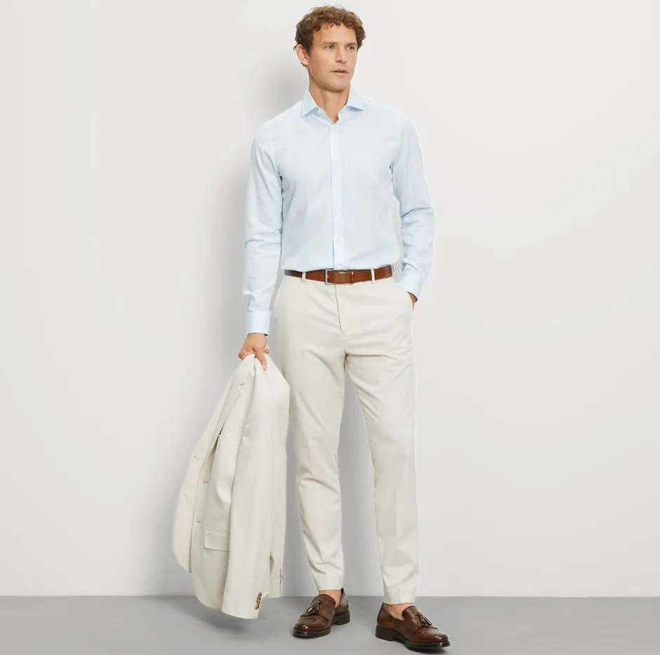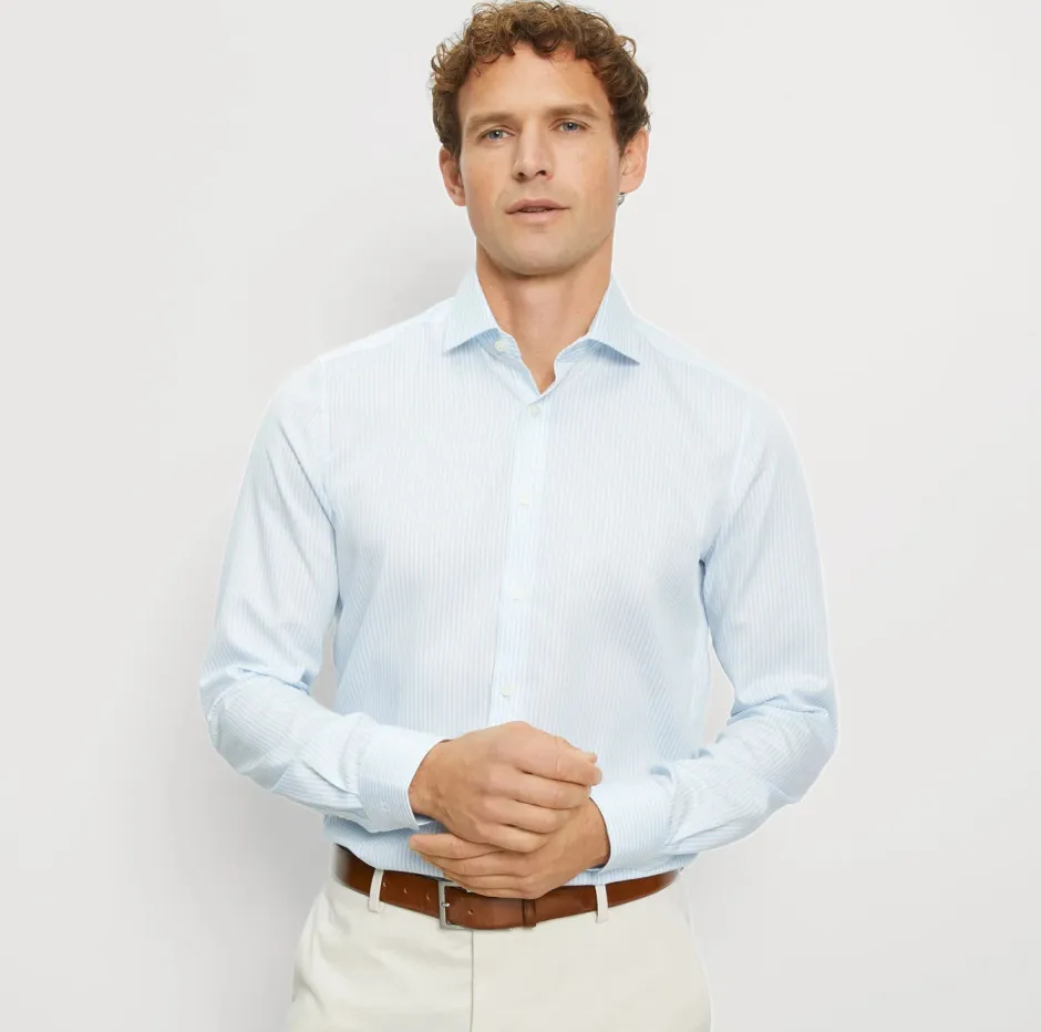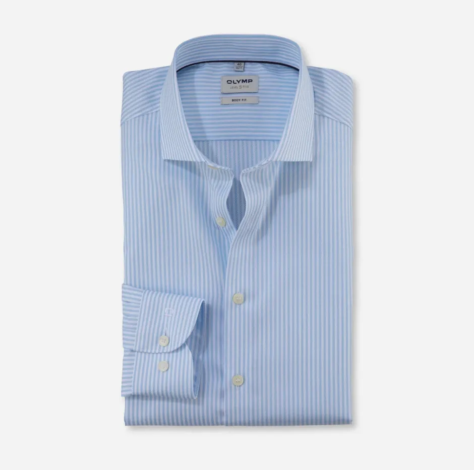 OLYMPLevel 5 Body Fit Stiped kauluspaita yhdistää klassisen tyylin ja modernin slim fit -istuvuuden. Kevyt ja hengittävä kangas on valmistettu 100 % puuvillasta, mikä takaa erinomaisen käyttömukavuuden ja helpon hoidon. Tyylikkäät raidat, hienostunut Royal Kent -kaulus ja hieman pyöristetty helma antavat paidalle elegantin mutta rentoon ilmeen. Muotoilu selässä tekee istuvuudesta siistin ja nykyaikaisen.