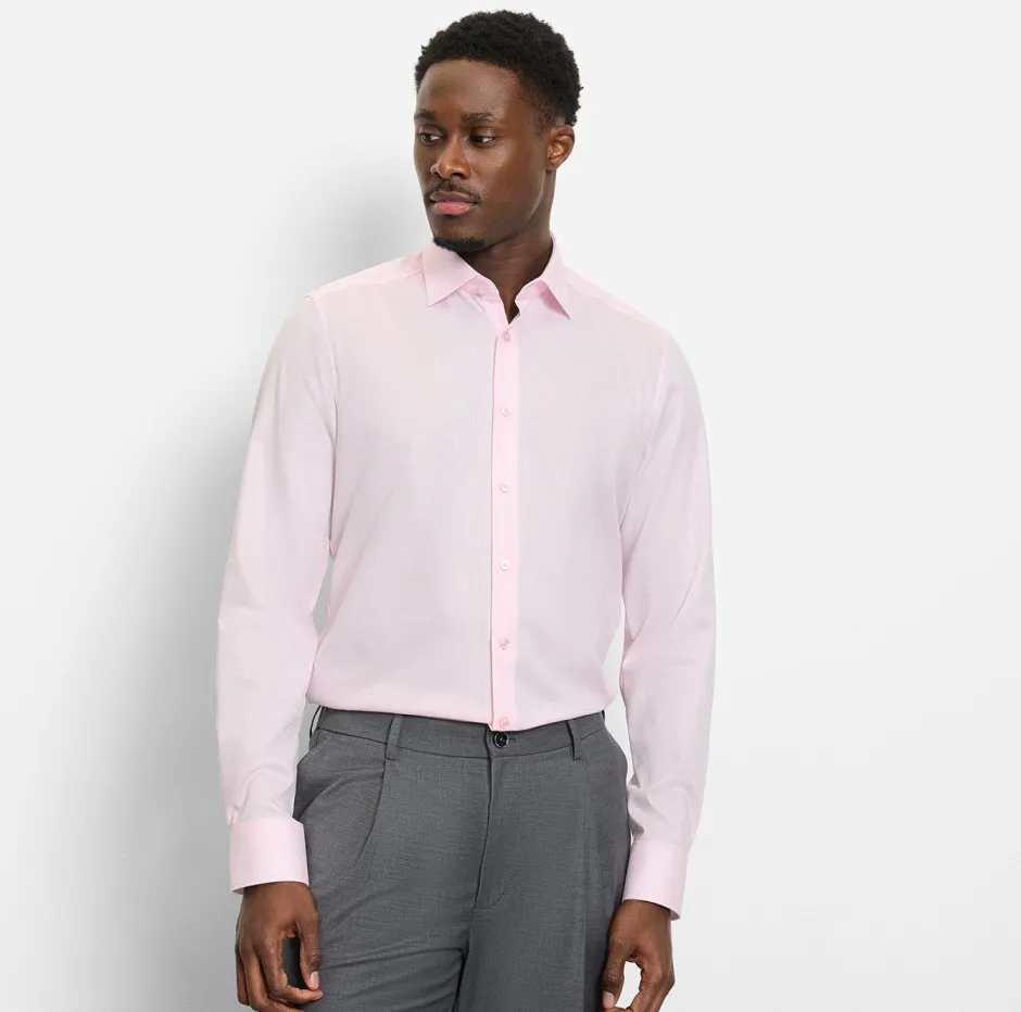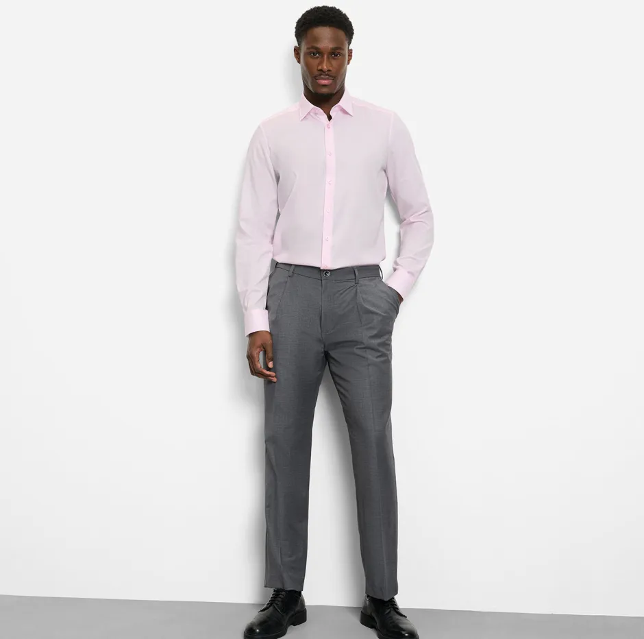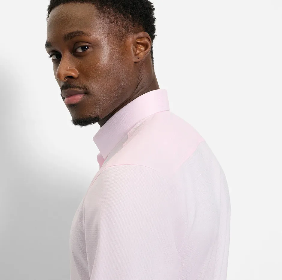 Pehmeä ja joustava Comfort Stretch -materiaali yhdistää puuvillan hengittävyyden ja elastolefiinin joustavuuden, jolloin paita liikkuu luonnollisesti mukana. Vaaleanpunainen on raikas ja helposti yhdisteltävä – se toimii hyvin niin farkkujen, chinojen kuin siistimpien housujen kanssa. Tämä kauluspaita säilyttää ryhtinsä koko päivän ja tuntuu mukavalta päällä.