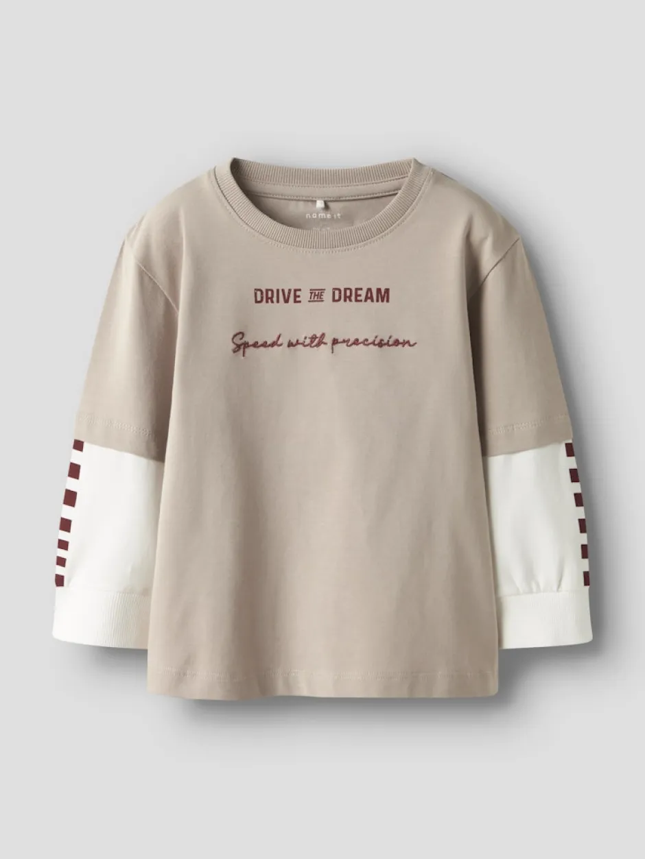 Name It NMMichael LS NREG Top Box on pehmeä ja mukava pitkähihainen paita lapsille. Klassinen malli sopii hyvin arkeen ja kerrospukeutumiseen. Pyöreä pääntie ja joustavat hihansuut tekevät paidasta käytännöllisen ja miellyttävän käyttää. Hillitty sävy “Island Fossil” tekee siitä helposti yhdisteltävän eri asujen kanssa.