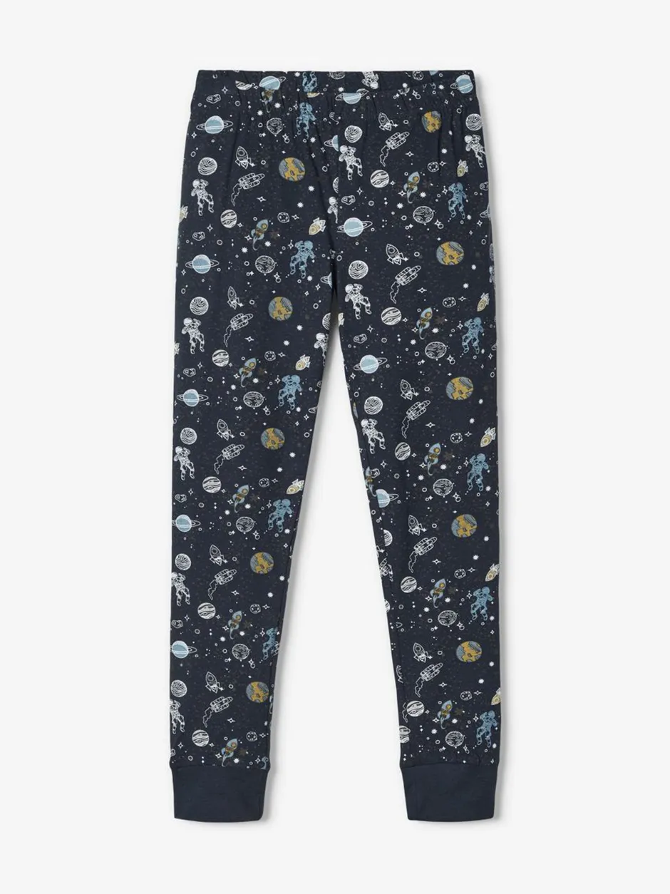 Name It lasten kuviollinen pyjama, joka on valmistettu luomupuuvillasekoitteesta. Pehmeä ja joustava materiaali, joka tuntuu päällä mukavalta. Setissä on pitkähihainen t-paita ja pitkät housut.