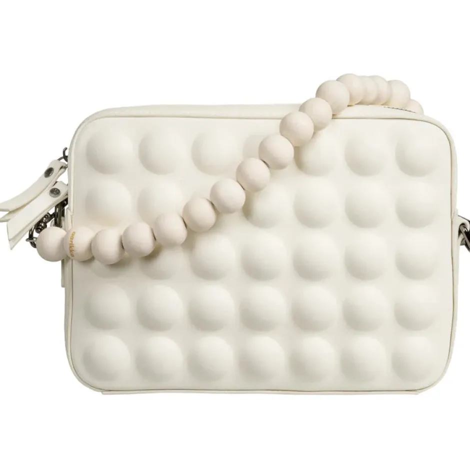 Pop-olkalaukku Auri on valmistettu kohokuvioidusta nahasta ja suljetaan vetoketjulla, joka takaa turvallisen säilytyksen. Laukun sisäpuoli on vuorattu jakardikuvioidulla kankaalla, ja siinä on kätevä sisätasku. Laukussa on säädettävä ja irrotettava olkahihna sekä irrotettava käsihihna. Käsihihnaa koristavat Aarikan ikoniset puuhelmet.