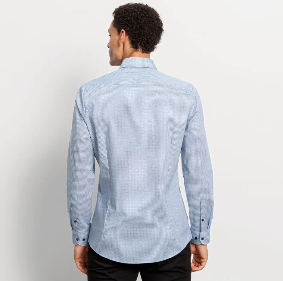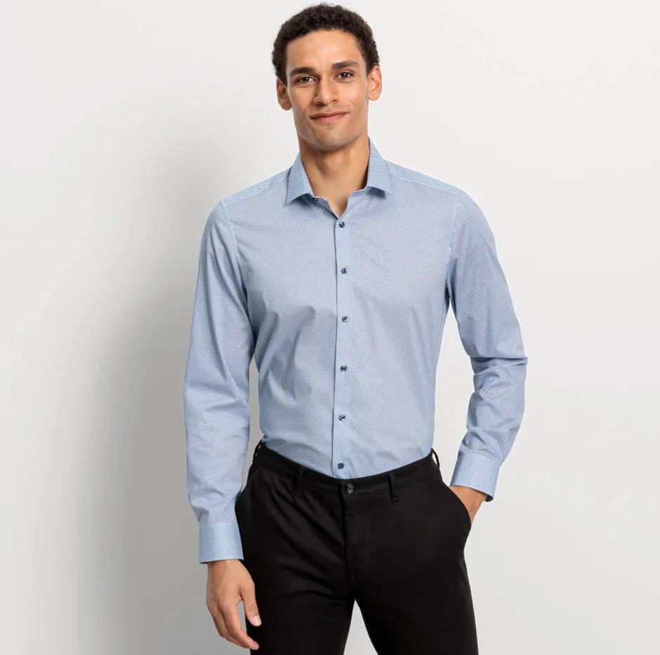 Hieman joustavaa ja helposti silitettävää materiaalia. Kapealinjainen: koossa 39/40 (M) rinnanympärys 110 cm ja vyörärö 98 cm, koossa 41/42 (L) rinta 116 cm ja vyötärö 104 cm, koossa 43/44 (XL) rinta 124 cm ja vyötärö 112 cm.