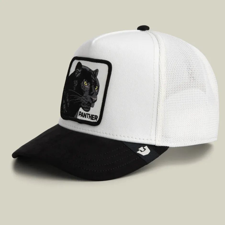 Valkoinen lippalakki mustalla tekonahkaisella lippaosalla, jota koristaa pantteri – hiljainen mutta tarkka, katse terävä ja liikkeet harkittuja. Pehmeä pinta tuntuu miellyttävältä, ja yksityiskohdat korostavat hallittua tyyliä. Mustavalkoinen väritys luo selkeää kontrastia, pantterimerkki tuo keskittymisen voimaa, ja kokonaisuus todistaa, että joskus hiljaisuus on kaikkein vaikuttavin ele.