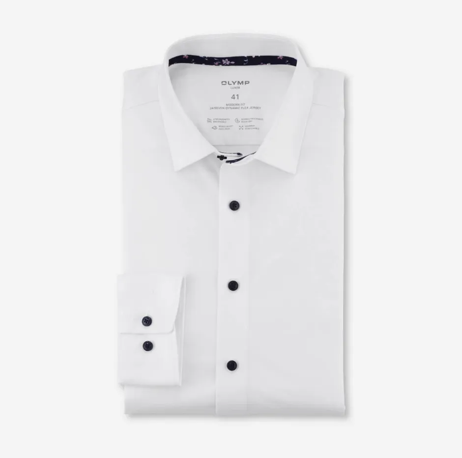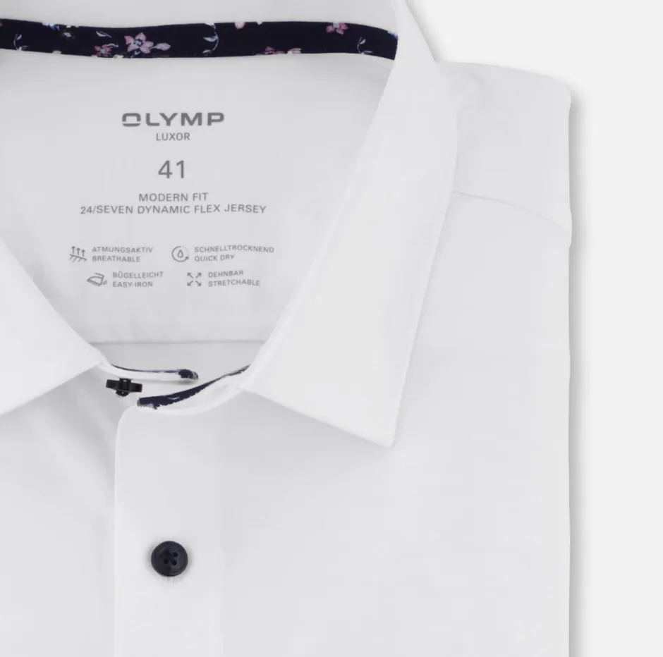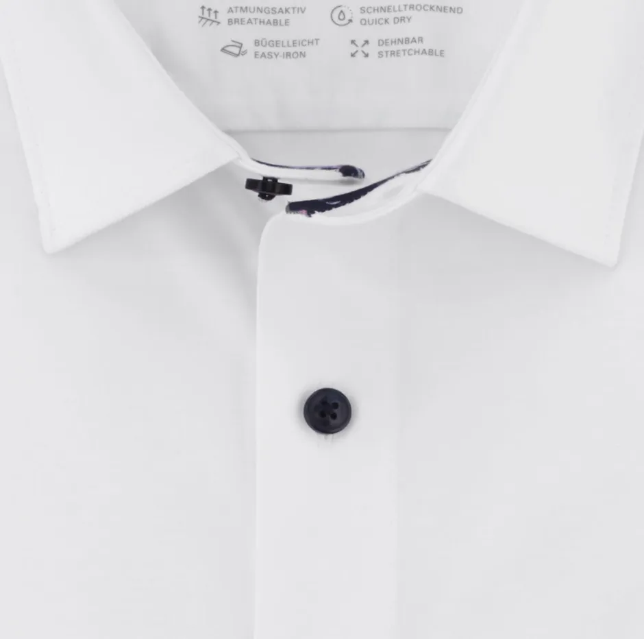 OLYMP Luxor moderni fit paita on urheilullinen, Puhdasta, ekologisesti sertifioidusta puuvillasta ja dynaamisesta elastaanista valmistettu pehmeä jersey takaa ihoystävällisen käyttömukavuuden, on kevyt, pehmeä, joustava, hengittävä, hajua estävä ja helppohoitoinen.