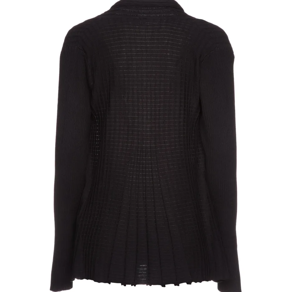 Naisten ohut, lyhyt neuletakki. Kaunista koristeneulosta, edessä ei kiinnityksiä. Koossa M pituus n.65 cm.