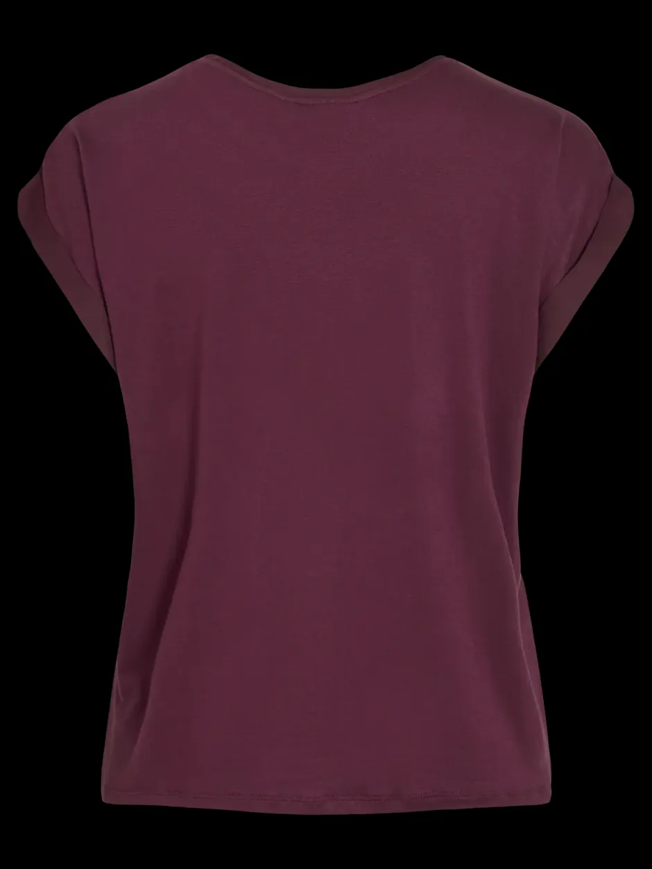 – Lyhythihainen toppi, jossa on pyöreä kaula-aukko – Satiinimainen pinta – Kevyttä materiaalia – Joustamatonta materiaalia – Pituus: 61 cm (koko 38) – Hihojen pituus: 11 cm (koko 38) – Malli on 178 cm pitkä, yllä koko 38.