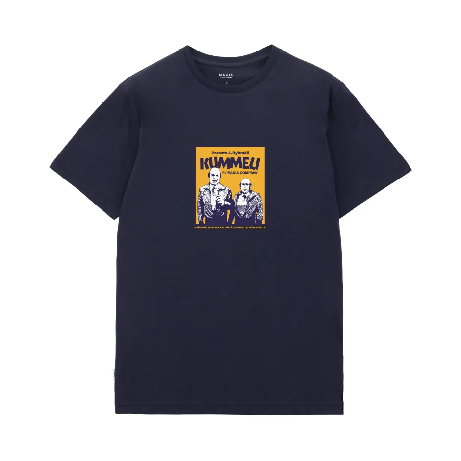 Kummeli Forever by Makia -malliston t-paita, jossa edessä Parasta A-ryhmää -printti. Paidassa pyöreä pääntie ja lyhyet hihat.