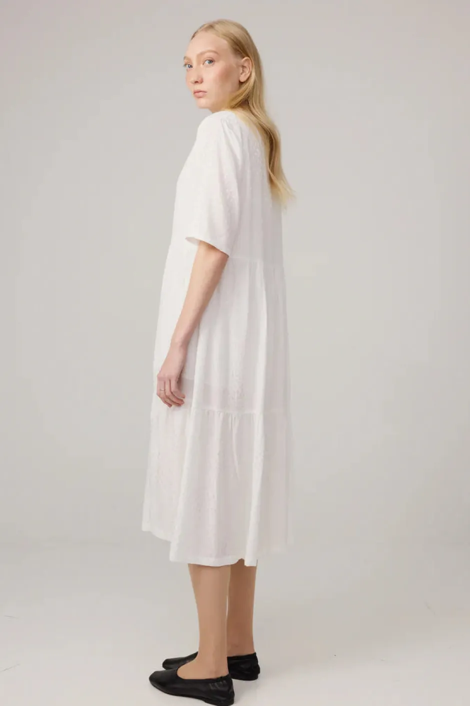 Makia Asteri Dress on naisellinen ja kevyt mekko, joka yhdistää minimalistisen skandinaavisen muotoilun ja arjen käytännöllisyyden. Mekossa on rentoutunut siluetti ja helma, joka laskeutuu kauniisti, mikä tekee siitä mukavan ja monikäyttöisen niin arkeen kuin vapaa-aikaan. Lyhyet hihat ja pyöreä pääntie tekevät mekosta helpon yhdistää kerrospukeutumisen kanssa, esimerkiksi neuletakin tai takin kanssa. Pehmeä ja hengittävä materiaali takaa miellyttävän käyttökokemuksen, ja hillitty design tekee mekosta ajattoman lisän vaatekaappiin.