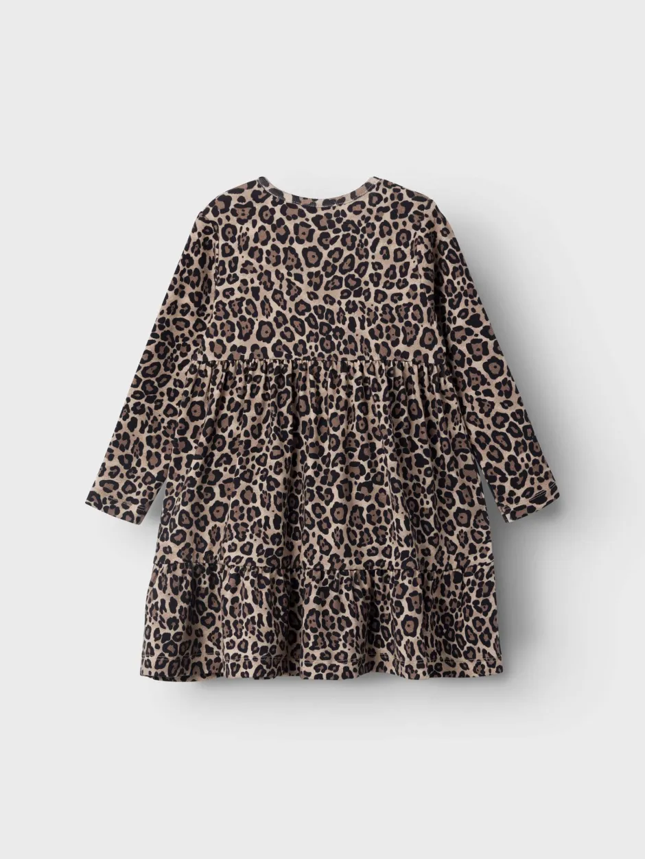 Joustava ja mukavan väljä mekko pantterikuosilla. Normaali istuvuus.