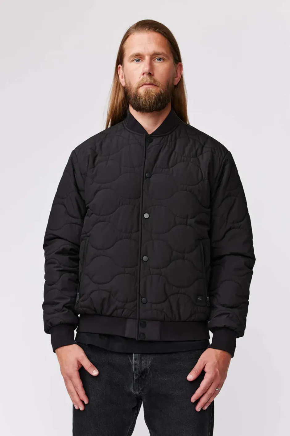 Makian miesten regular fit mitoitettu bombertakki löyhempään säähän tai kerrospukeutumiseen. Gravity Jacket sisältää kevyen kierrätetystä polyesterista valmistetun vuoren. Napit ovat mattapintaiset. Viimeistelty majakka-kuviolla, joka on inspiroitu tunnetuimmista suomalaisista majakkasaarista. • 3000 mm vedenpitävyys • 3000 g/m²/24h hengittävyys • Joustinneule kaula-aukossa, hihansuissa ja helmassa • Painonapit edessä • Etutaskut YKK-vetoketjuilla ja fleece-vuorilla • Sisärintatasku