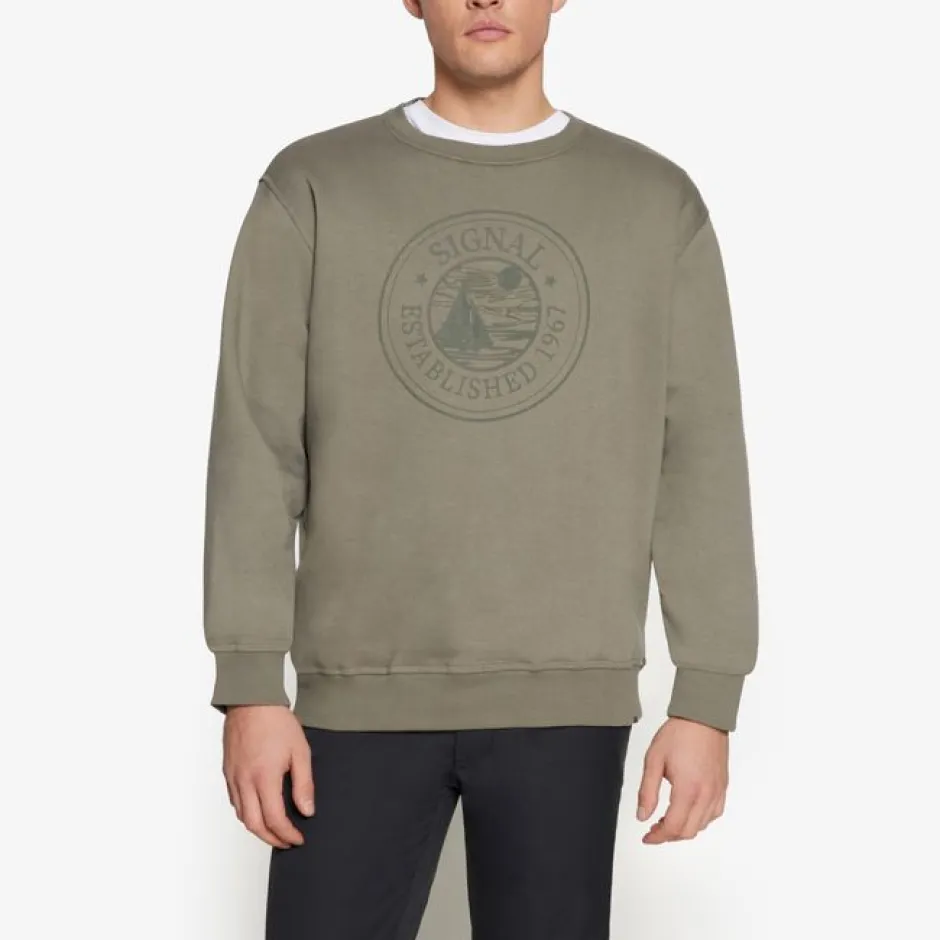 Signal-collegepaita, jossa on iso pyöreä logo rinnassa. Ribattu resori pääntiessä, hihansuissa ja helmassa takaa mukavan istuvuuden.