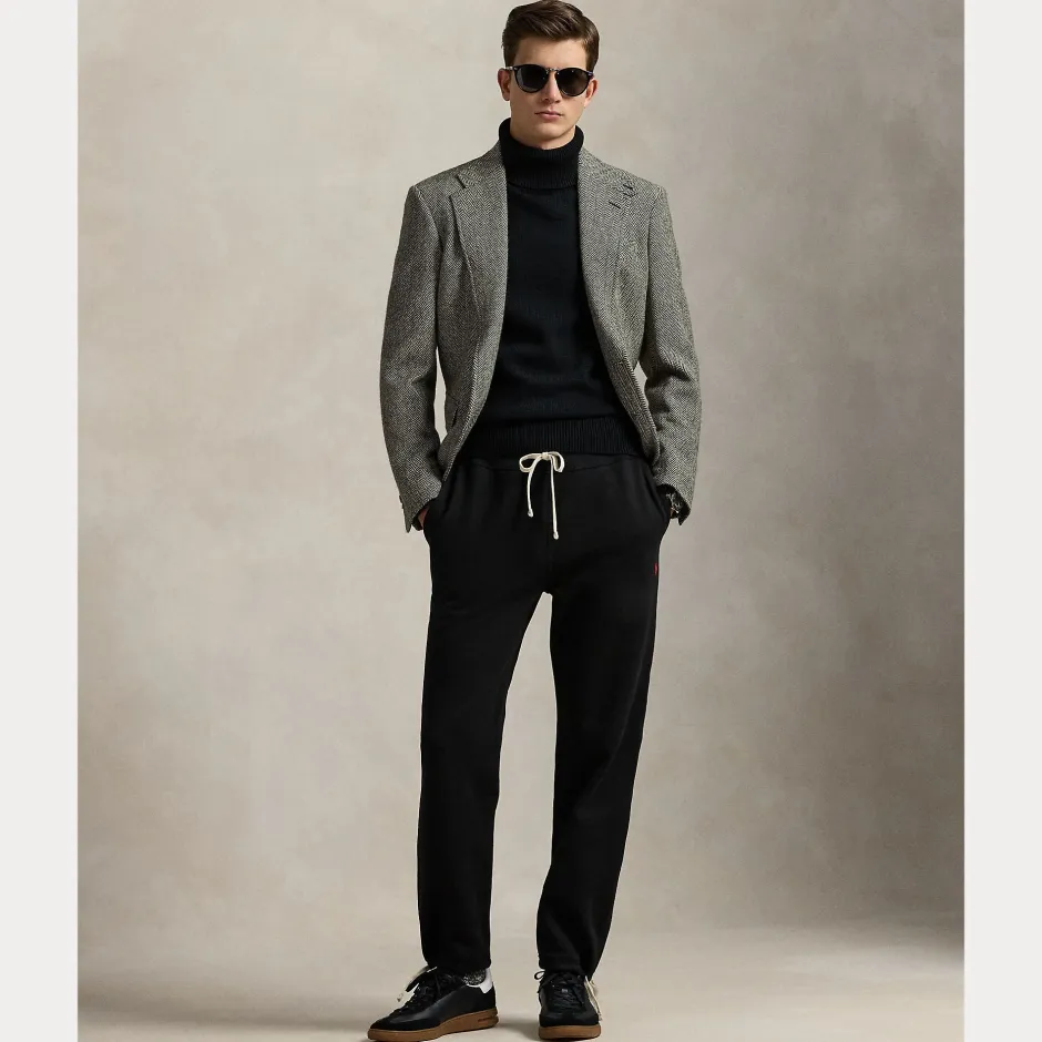 Pehmeästä puuvillasekoitteesta valmistetut collegehousut ovat mukavat poolo-vaatekappaleet.