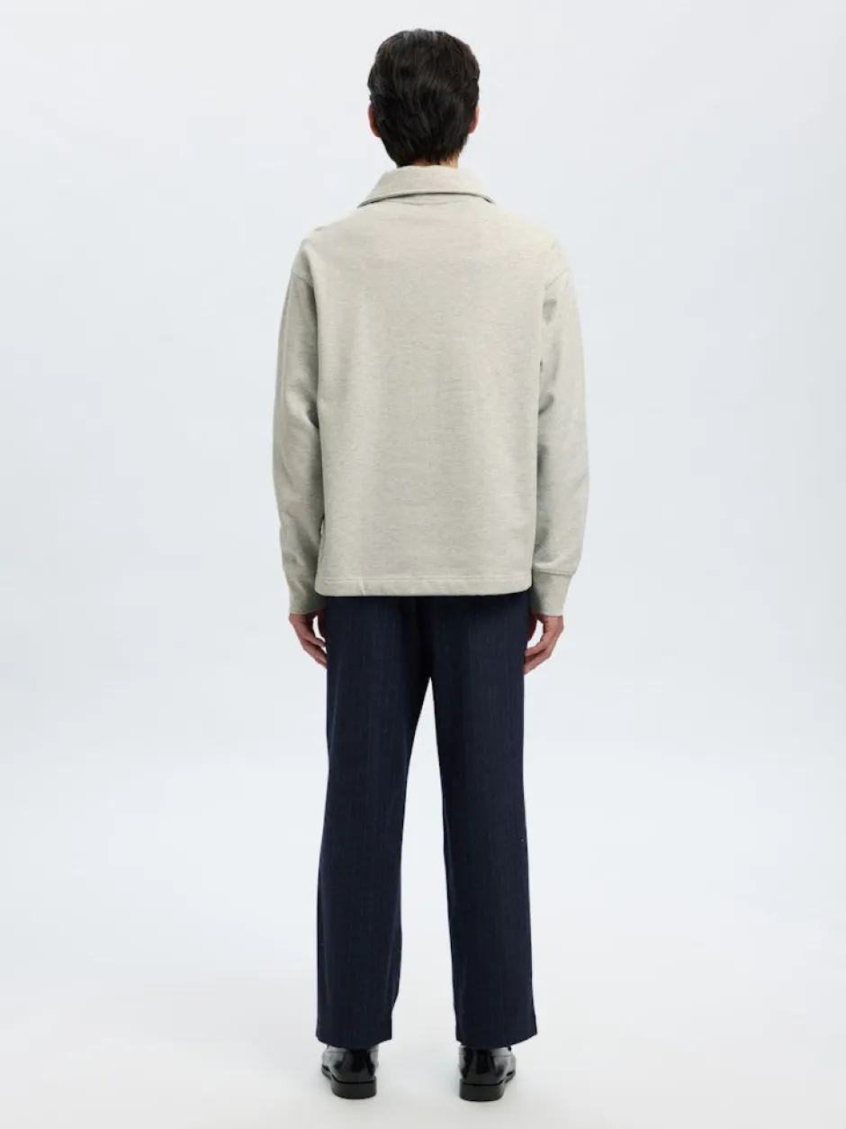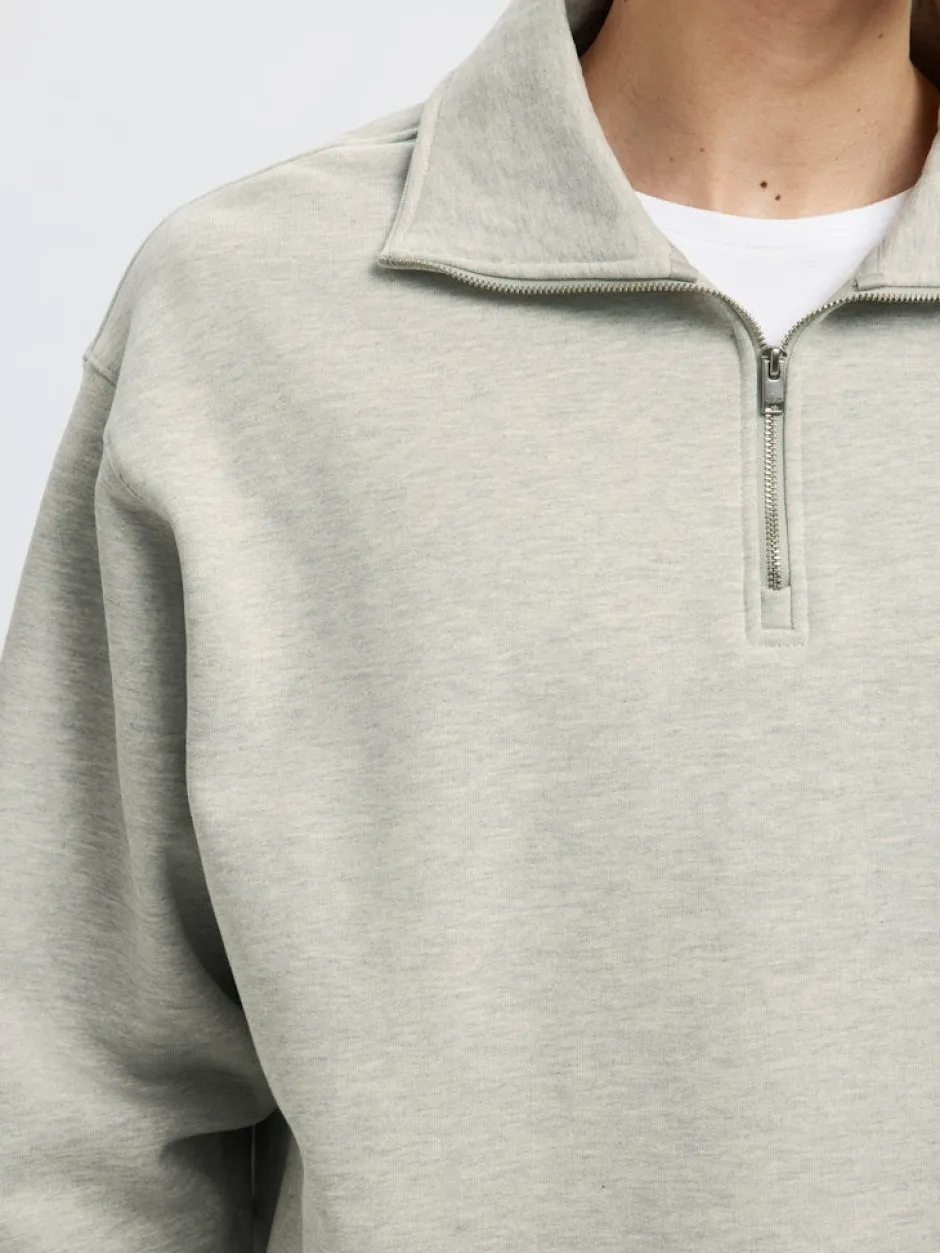 Rento ja monikäyttöinen vetoketjullinen collegepaita vaaleanharmaassa sävyssä, valmistettu pehmeästä puuvillasta. Huppari on suunniteltu arkikäyttöön ja se yhdistyy vaivattomasti niin farkkujen kuin treenihousujen kanssa, täydellinen valinta vapaa-ajan asuun tai kerrospukeutumiseen.