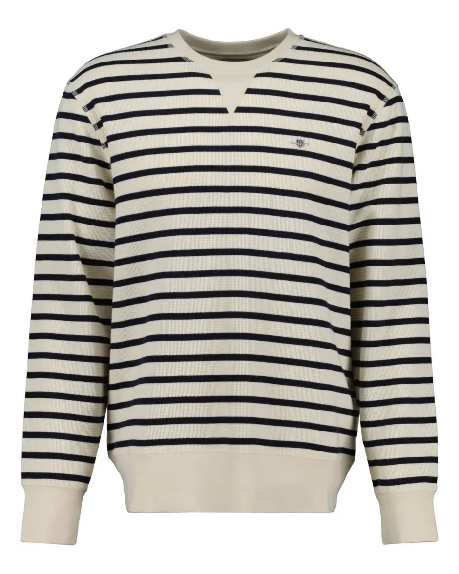 GANTin Striped Waffle Knit Crew Neck Sweatshirt on tyylikäs ja monikäyttöinen miesten collegepaita, joka yhdistää klassisen designin ja modernin mukavuuden. Se tarjoaa miellyttävän tuntuman ihoa vasten ja hengittävyyttä koko päivän käyttöön.