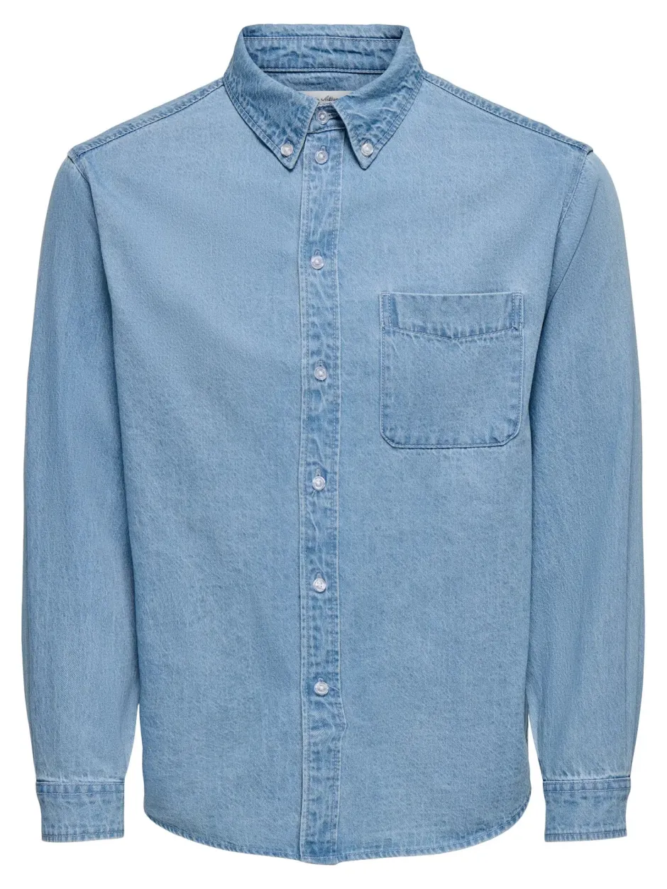 ONLY & SONS ONSORSON Shirt on monikäyttöinen ja tyylikäs miesten farkkupaita, joka tuo hillityn mutta huolitellun ilmeen arkeen ja smart‑casual‑tyyliin. Paidassa on klassinen kaulus, napillinen edusta ja pitkät hihat, jotka yhdessä luovat ajattoman siluetin. Pehmeä ja hengittävä materiaali takaa käyttömukavuuden koko päivän, ja regular‑fit‑leikkaus tarjoaa hyvän istuvuuden. Tämä paita on helppo yhdistää farkkujen tai chinojen kanssa – täydellinen valinta toimistoon, kaupungille tai rentoon viikonloppuasuun.