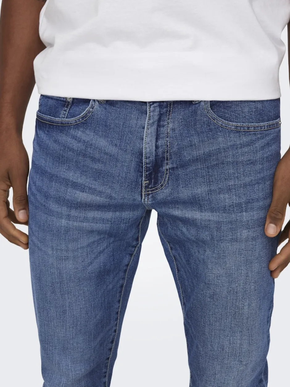 Nämä miesten Regular Fit -farkut ONLY & SONSilta tarjoavat suoraleikkaisen ja ajattoman siluetin, joka sopii yhteen niin rennon t-paidan kuin smart-casual-kauluspaidan kanssa. Farkuissa on normaali vyötärö, vetoketjukiinnitys ja perinteinen viisitaskurakenne, ja ne on valmistettu laadukkaasta denimmateriaalista, jotta ne tuntuvat mukavilta ja kestävät arjen käyttöä.