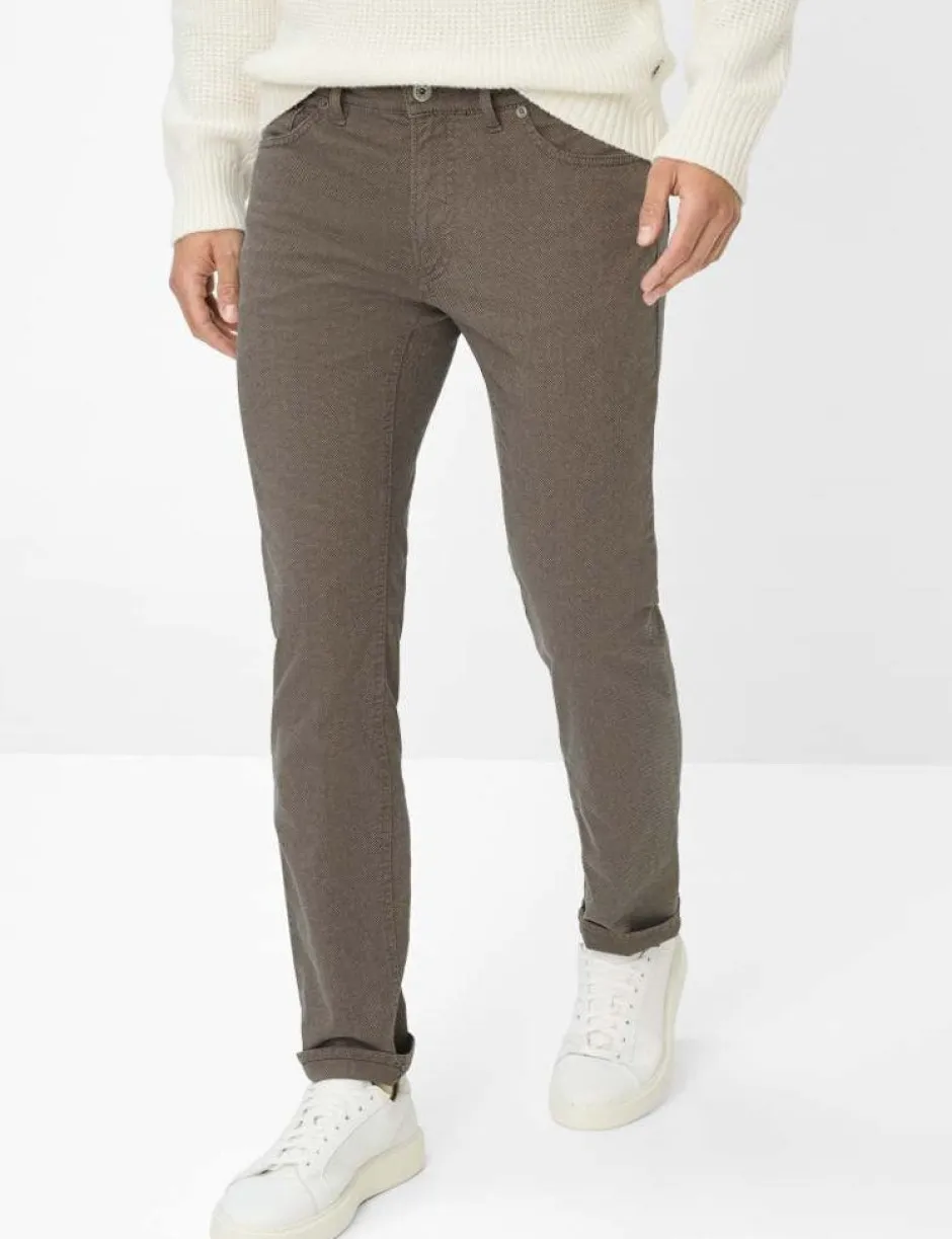Teksturoitu pinta antaa housuille lisää syvyyttä ja dynaamista ilmettä. Samaan aikaan puuvillasekoite tekee vaikutuksen pehmeällä ja kestävällä mutta joustavalla tuntumalla. Mukavuutta lisää joustava Hi-FLEX-kangas, joka myötäilee vaivattomasti jokaista liikettä. Nämä miesten housut ovat todellinen välttämättömyys – modernit, tyylikkäät ja helposti yhdisteltävät.
