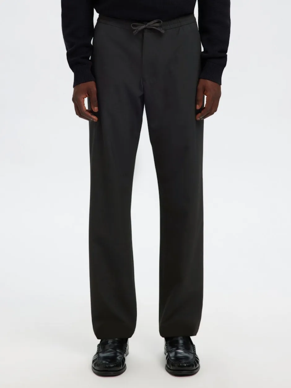 Selected 196 Straight Fit Trousers on monikäyttöinen ja tyylikäs miesten suorat housut, jotka yhdistävät huolitellun ilmeen ja käyttömukavuuden arkeen ja smart‑casual‑tyyliin. Housuissa on elasticated waistband eli joustava vyötärö, jonka kiristysnyöri takaa mukavan istuvuuden ilman rajoittavaa tuntua. Mid‑waist‑vyötärö sekä suora lahjemalli tekevät näistä housuista helposti yhdistettävän esimerkiksi T‑paidan ja tennareiden kanssa rennompaan tyyliin tai kauluspaidan ja pukineiden kanssa siistimpään kokonaisuuteen. Edessä on faux fly ‑yksityiskohta, takataskut, ja design on minimalistinen mutta laadukas, sopien moniin eri tyyleihin ja tilanteisiin.
