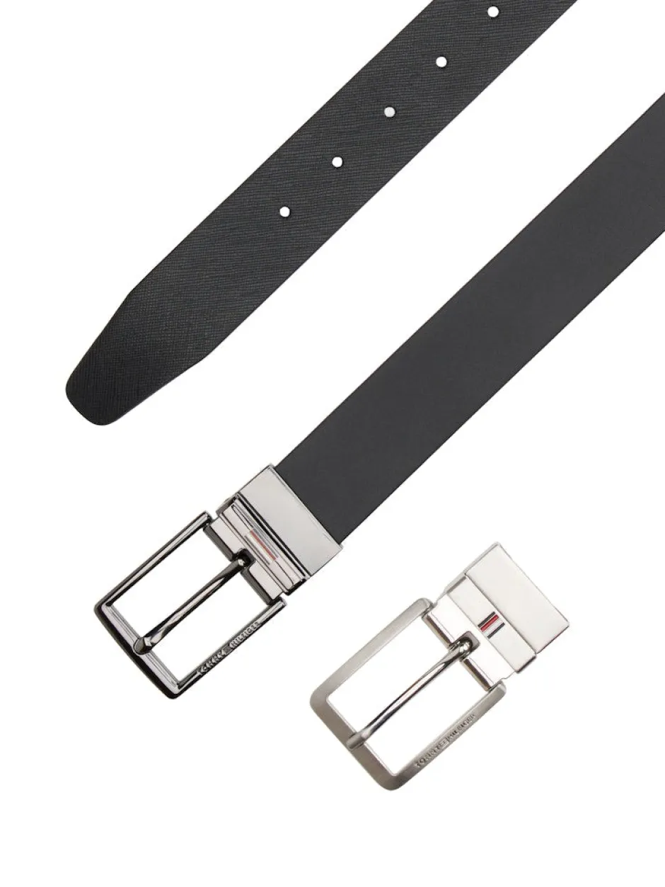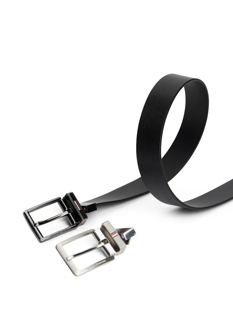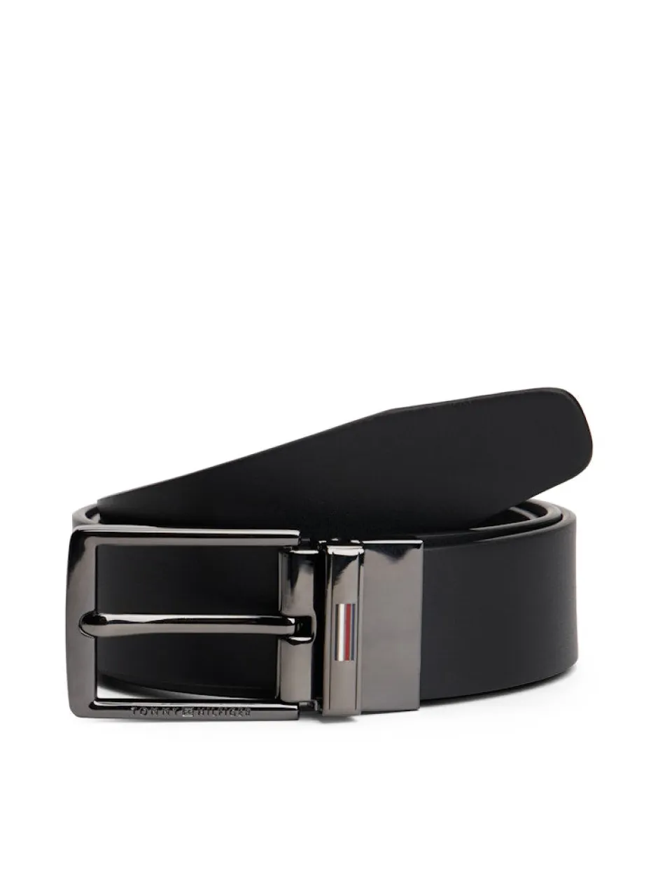 Tommy Hilfiger TH Business Reversible Leather Belt Gift Box on elegantti ja käytännöllinen vyö, suunniteltu sekä arkeen että juhlavaan pukeutumiseen. Vyö on valmistettu aidosta nahasta ja siinä on sileä viimeistely sekä kahdella eri puolella toimiva rakenne: voit helposti vaihtaa vyön ulkonäköä kääntämällä sen. Lähetys sisältää tyylikkään lahjapakkauksen — making it a classy gift choice. Metallisoljet ovat näyttävät ja niihin on painettu Tommy Hilfiger -logo, jolloin vyö näyttää viimeistellyltä ja huolitellulta. Tämä monipuolinen vyö sopii niin farkkujen, chinojen kuin pukuhousujen kanssa ja on helppo yhdistää erilaisiin tyyleihin.