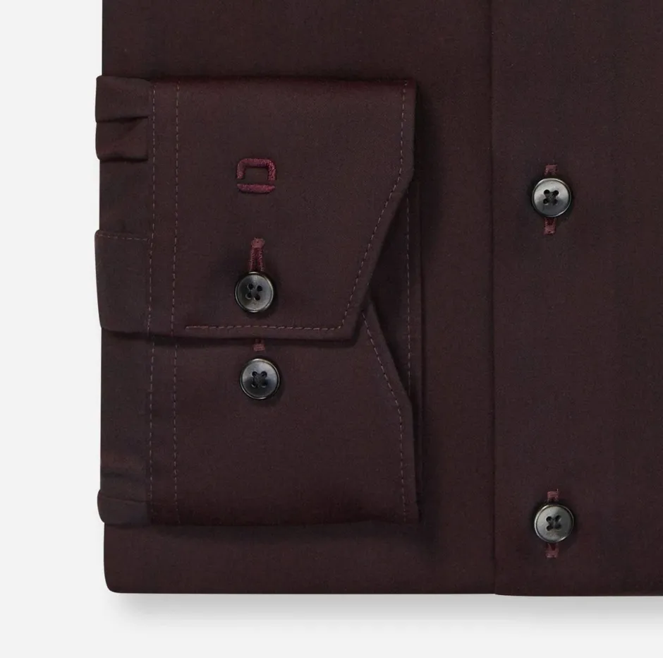 Elegantti miesten Club OLYMP Luxor -paita rohkean bordeaux-sävyssä. Hieno 100-prosenttisesta puuvillasta valmistettu kangas vakuuttaa elegantilla kiillollaan, maskuliinisella tyylillään ja vartalonmyötäisellä leikkauksellaan. Hienojen lankojen erityisominaisuuksiin kuuluvat ihoystävällinen mukavuus ja helppohoitoisuus. Viimeistelevästi kosmopoliittinen Global Kent -kaulus. Ei tarvitse silittää.