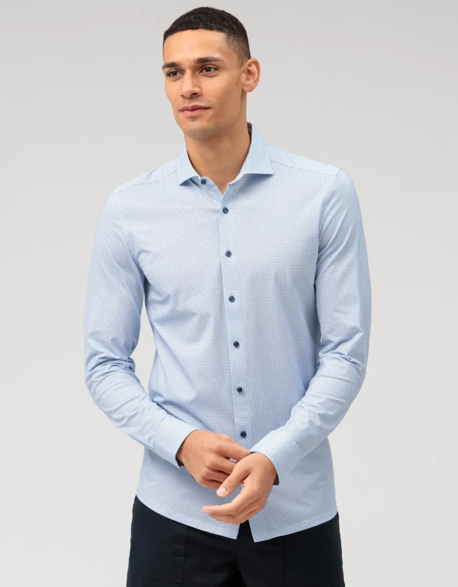 Täydellinen bisneslook mukavassa kankaassa: tässä OLYMP Level Five -paidassa elegantti minimalistinen muotoilu kohtaa erittäin kevyen, hengittävän ja erittäin joustavan 24/Seven Dynamic Flex -jerseyn. Leikkaus on klassinen ja tyylikäs body fit, viimeistelty ajattomalla Kent-kauluksella.