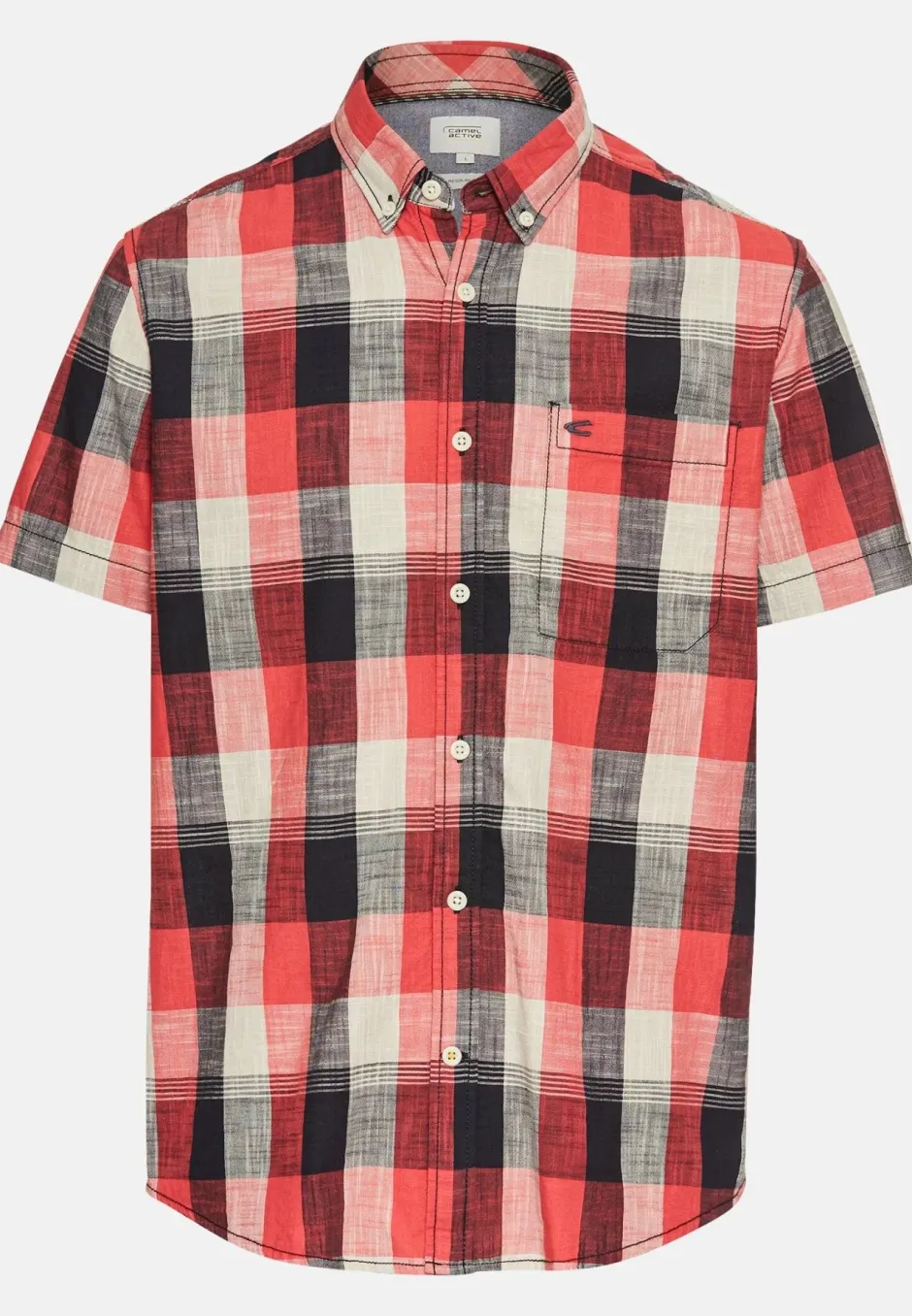 Camel Activen ruudullinen lyhythihainen paita on valmistettu 100% puuvillasta, mikä tekee siitä hengittävän, kestävän ja helppohoitoisen. Paita on suunniteltu klassiseen tyyliin, ja siinä on nappikaulus, rintatasku sekä nappilista. Rintataskua koristaa Camel Activen logo.