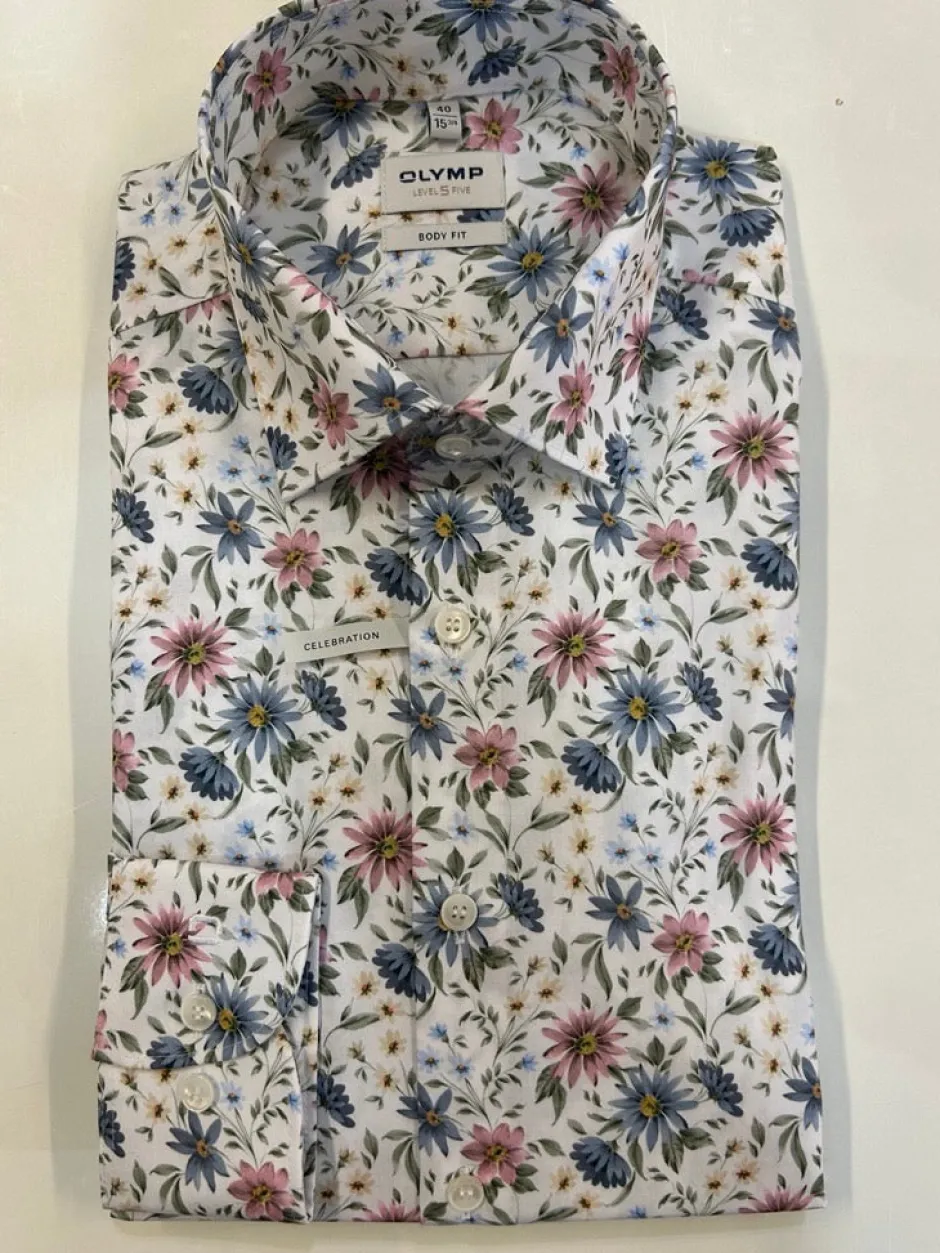 Miesten kauluspaita helposti silitettävää puuvillaa. Paidassa raikas kukkakuosi.
