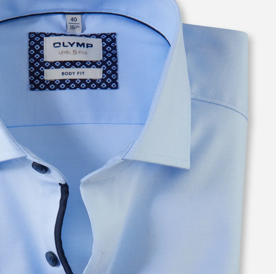 OLYMP Level Five -tason vartalonmyötäiset business-paidat ilahduttavat ominaisuuksillaan, jotka myötäilevät jokaista liikettä. Hienosti joustava puuvillakangas korostaa klassisella tavalla nykyaikaista business-lookkia ja siinä on houkutteleva, vartalonmyötäinen siluetti. Monipuolinen yleisvaate, joka on valmistettu yrityksemme todistettujen laatustandardien mukaisesti. Se määrittelee OLYMPin business-elämän: asennetta, tyyliä ja näyttävyyttä.
