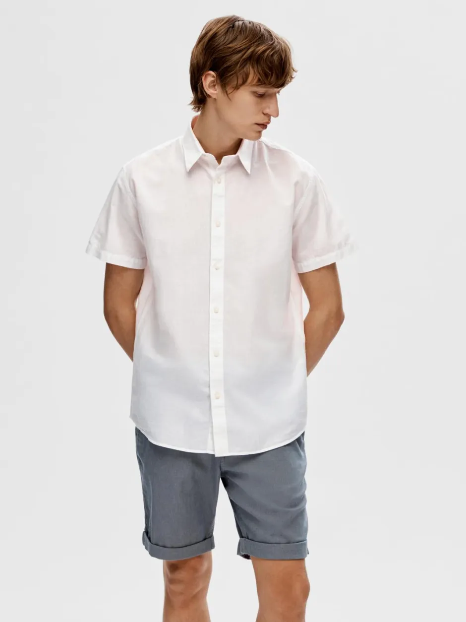 – Pellavasekoite – Regular fit – Lyhyet hihat – Kaareva helma – Yhdistä vaikka chinoihin tai farkkuihin