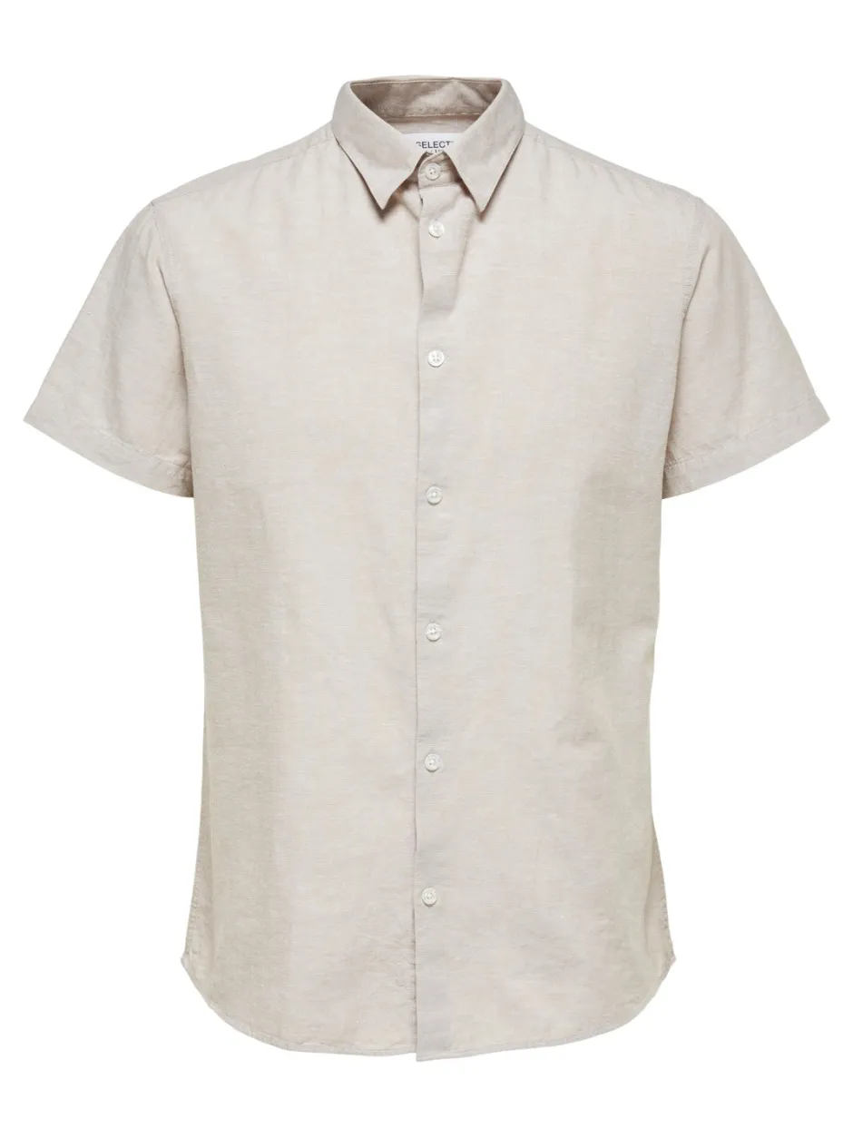 Selected miesten kauluspaita, normaali mitoitus. Materiaali pehmeää ja vilpoista pellavan ja puuvillan sekoitetta.