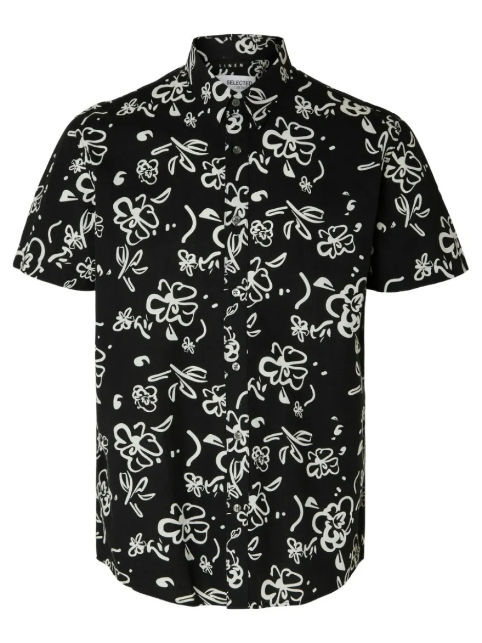 Selected miesten kauluspaita, normaali mitoitus. Materiaali pehmeää ja vilpoista pellavan ja puuvillan sekoitetta.