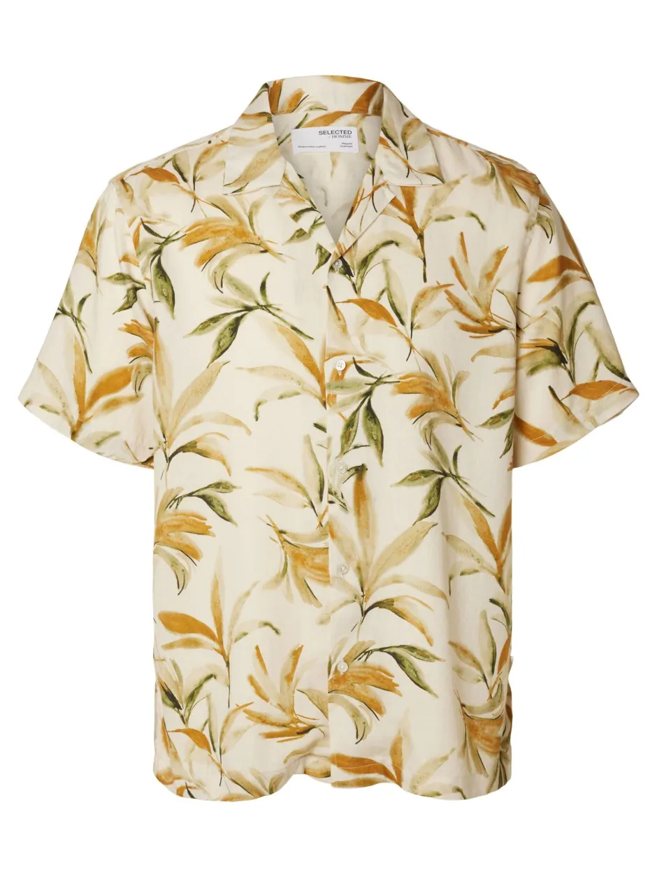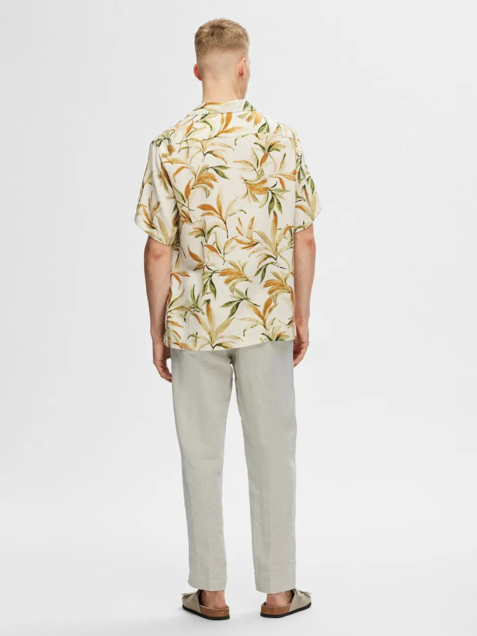 – Levitetty kaulus – Edessä napitus – Lyhyet hihat – Painettu muotoilu – Valmistettu pellavasta – Normaali istuvuus