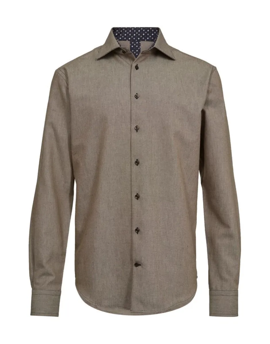 Gino Marcellolta valmistetusta tyylikkäästä ruskeasta paidasta on moderni istuvuus. Monipuolinen valinta, joka sopii täydellisesti sekä toimistolle että juhlavampiin tilaisuuksiin.