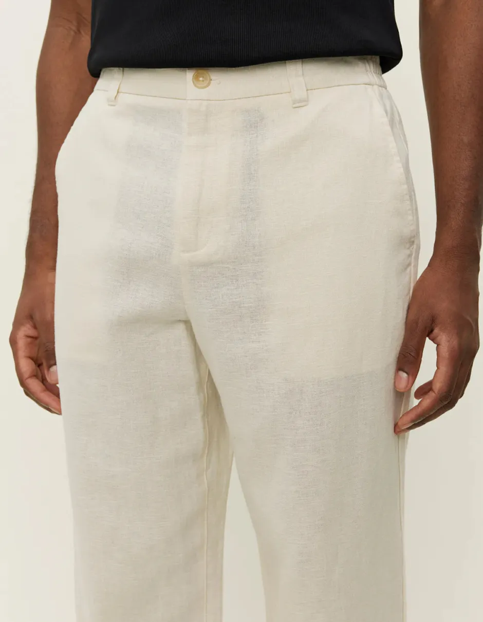 Les Deuxin Pino Linen -housut yhdistävät skandinaavisen minimalistisen muotoilun ja luonnonmateriaalien keveyden. Nämä housut ovat täydellinen valinta lämpimiin päiviin, tarjoten sekä tyylikkyyttä että käyttömukavuutta.