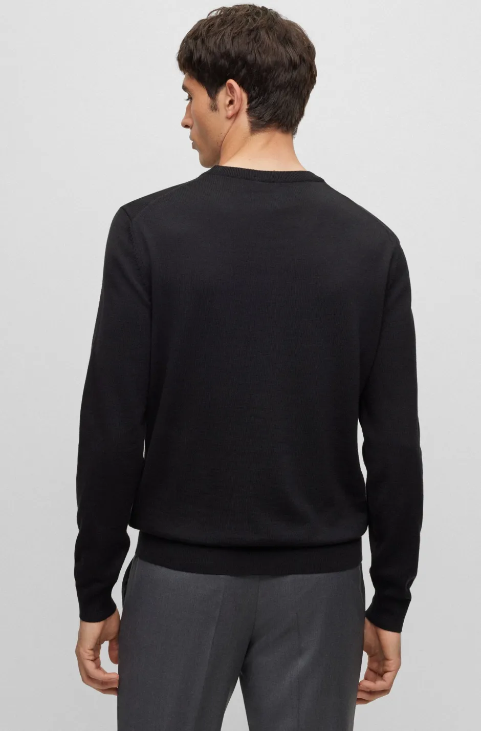 BOSS Menswearin tyylikäs neule. Brodeerattu logo vasemmassa rinnassa, tämä pusero on leikattu normaaliin istuvuuteen. Neuleessa on v-pääntie. Normaali istuvuus V-pääntie Pitkät hihat Resorit hihansuissa Vakiopituus