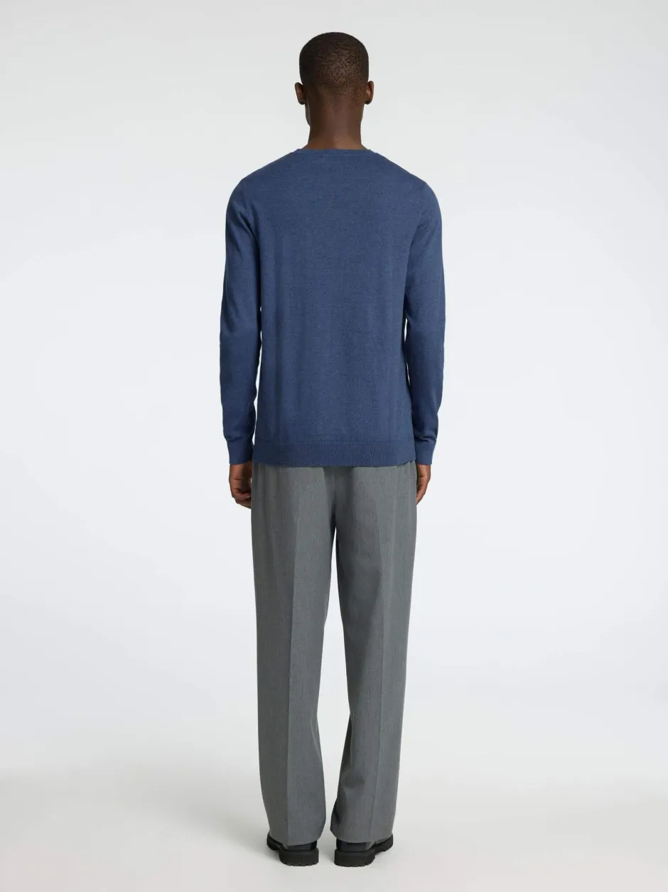 Miesten pitkähihainen neule, pyöreä pääntie. Olkapäillä neulotut yksityiskohdat, helmassa ja hihansuissa resorit. Valmistettu pehmeästä pimapuuvillasta.