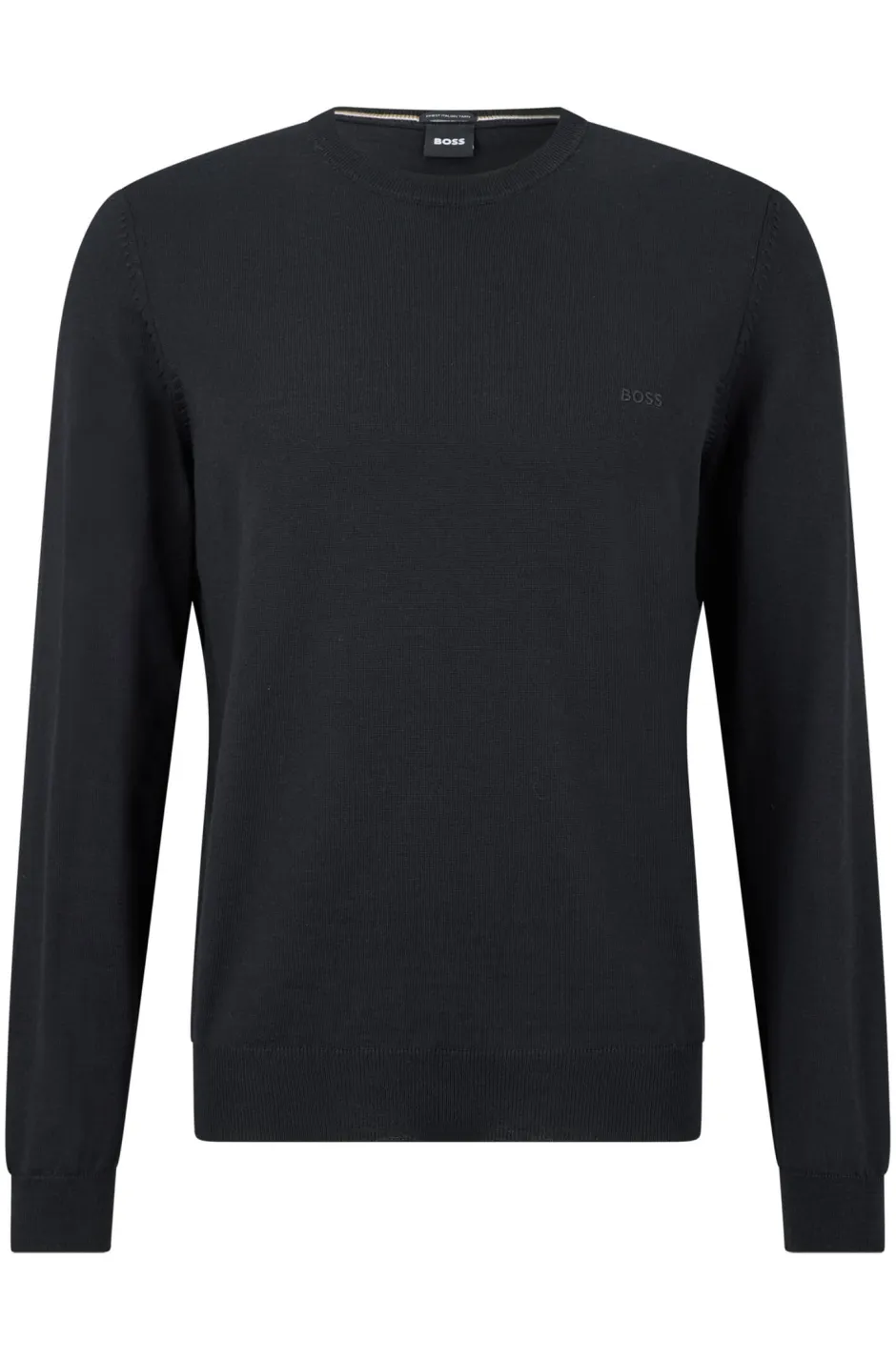 Hugo Bossin miesten klassinen neulepaita 100% villaa. Normaali istuvuus, pyöreä pääntie ja pitkät hihat. Pääntiellä, hihansuissa ja helmassa joustinneulosta. Rinnassa hillitty brändin logo.