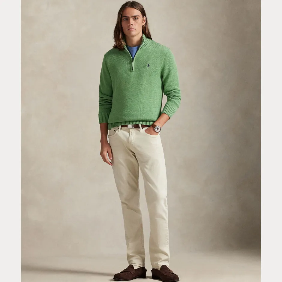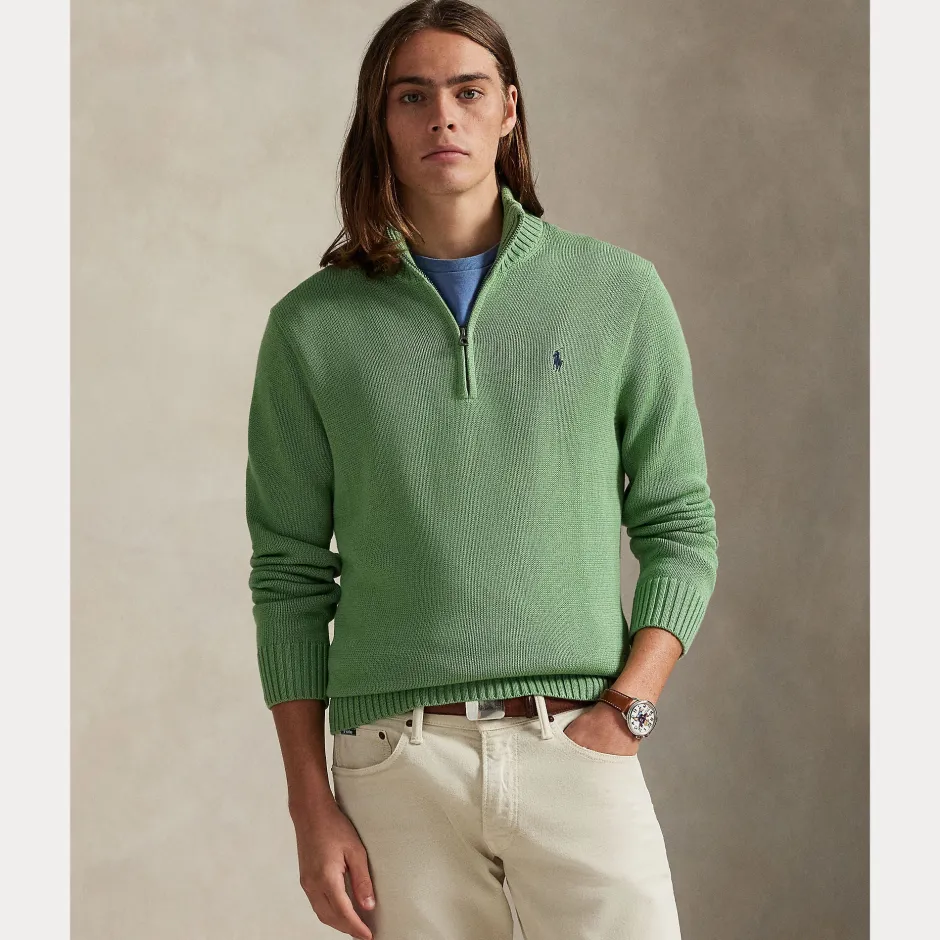 Polo Ralph Laurenin klassinen miesten puolivetoketjullinen neulepaita on ajaton suosikki. Neulepaidassa on pieni pystykaulus, pitkät hihat sekä miellyttävää joustinneulosta hihansuissa, helmassa ja kauluksessa. Neulepusero on neulottu pehmeästä ja laadukkaasta kampapuuvillasta. Tyyli on viimeistelty pienellä ikonisella Polo Pony -logolla.