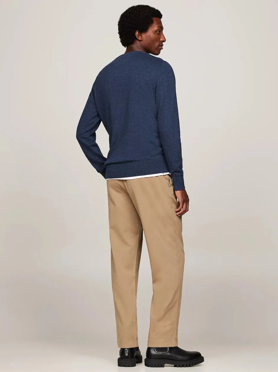Tommy Hilfiger miesten kashmirsekoitteinen neulepusero. Pyöreä pääntie, ribbineulottu kaulus, hihansuut ja helmat. Normaali istuvuus. Rinnassa Tommy Hilfiger lippukirjonta
