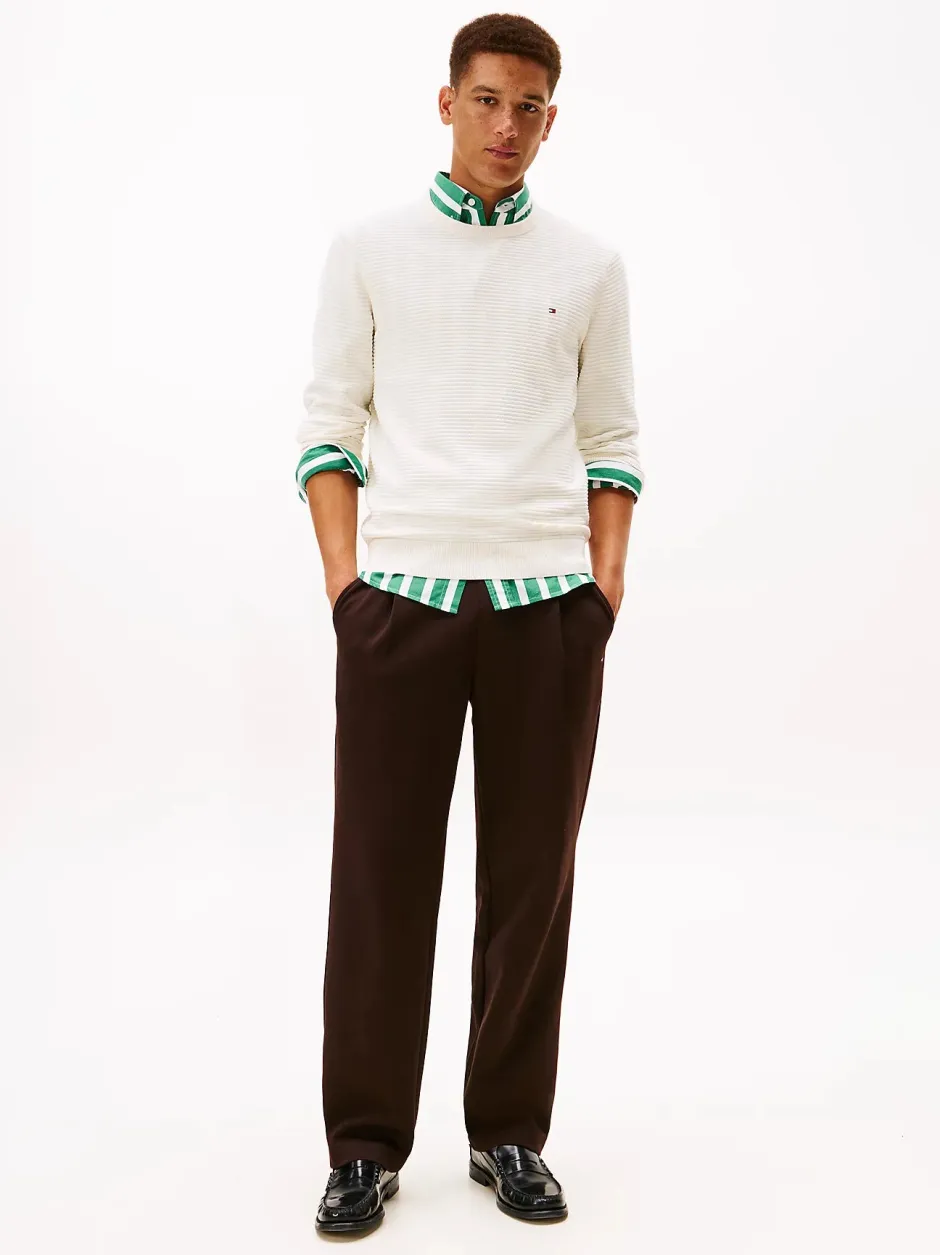 Tommy Hilfigerin klassiseen neulepuseroon uutta ilmettä tuo hienostunut struktuuripinta. Neuleessa on pyöreä pääntie, pitkät hihat sekä mukava regular fit -istuvuus. Hihansuissa, pääntiellä ja helmassa mukavuutta tuovat joustinneulokset. Neulepuseron materiaalina on laadukas, kestävä ja miellyttävän tuntuinen 100% puuvilla. Tommy Hilfigerin tunnistettavan ilmeen viimeistelee pieni logo rinnassa.