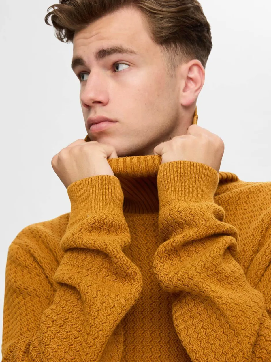 Selectedin struktuuripintainen korkeakauluksinen neule. Normaali istuvuus.